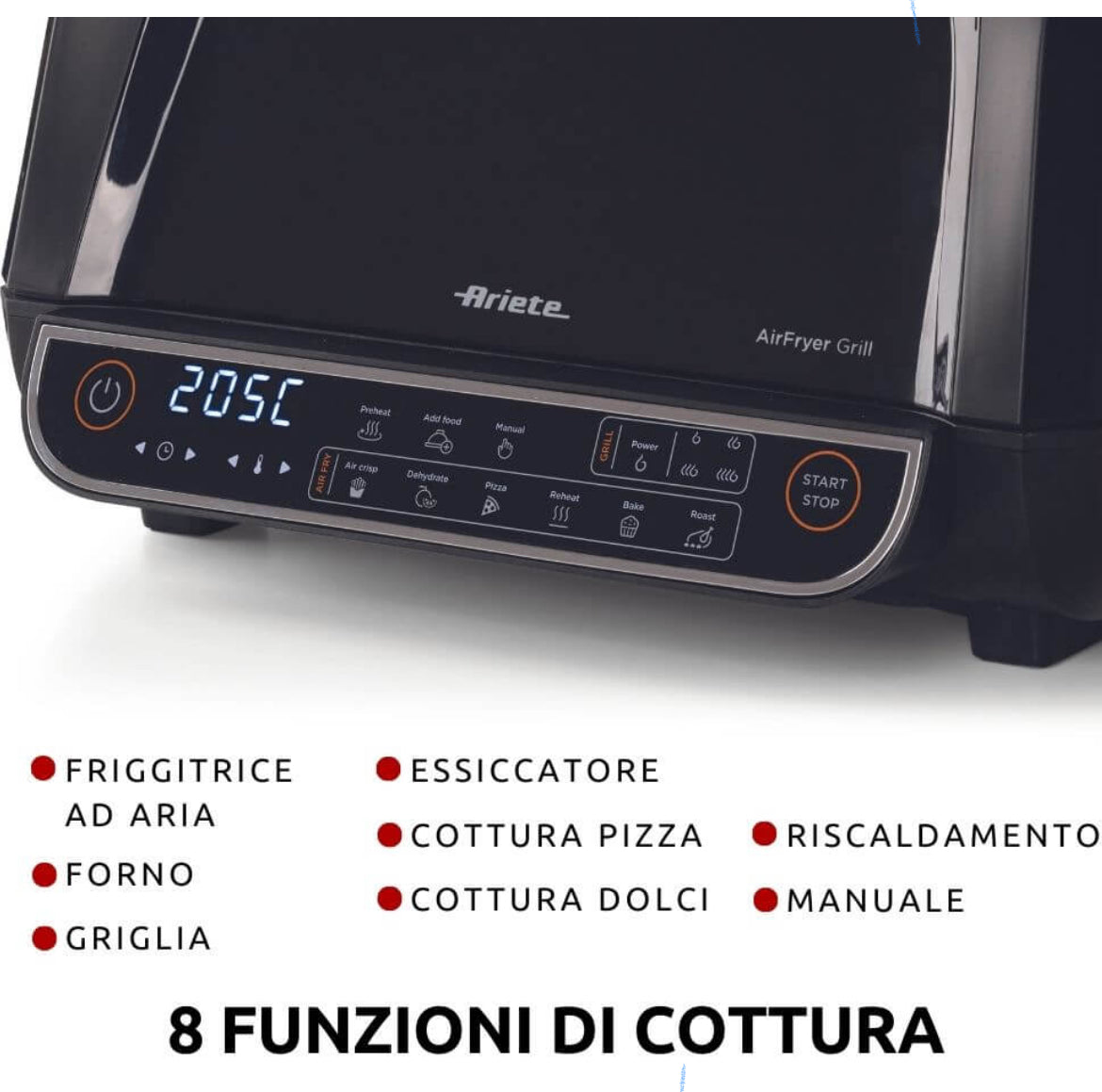 | 8 Funzioni di cottura | friggitrice ad aria, forno, griglia, essiccatore, cottura pizza e dolci, riscaldamento, manuale |