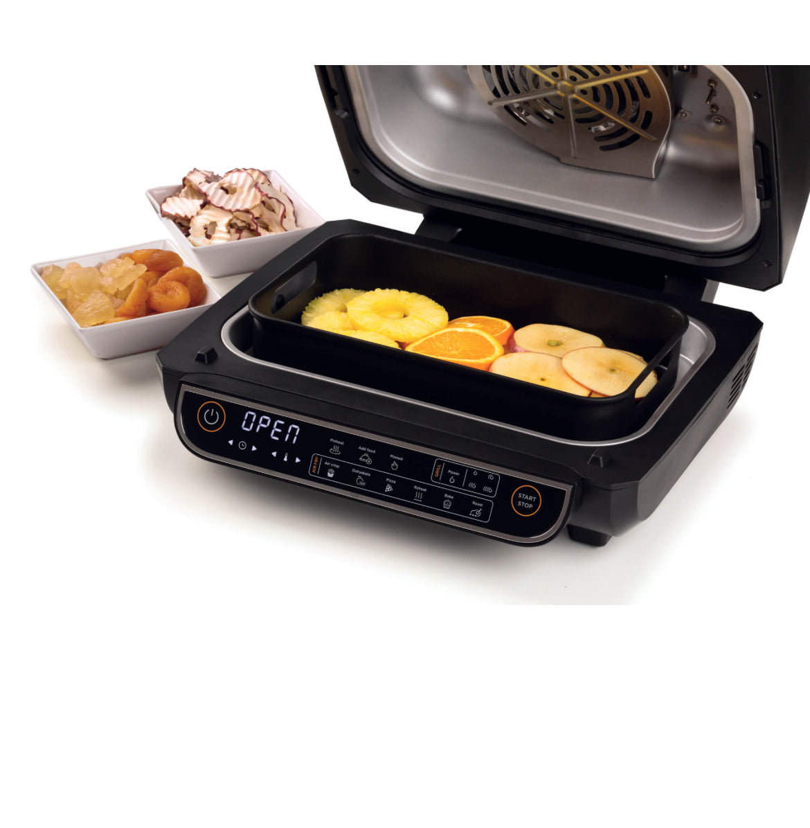 Ad ogni piatto la propria cottura: 4 livelli di grill regolabili per la cottura della carne, cottura air crisp per cibi gustosi e croccanti, funzione grill per le verdure e funzione essiccazione.