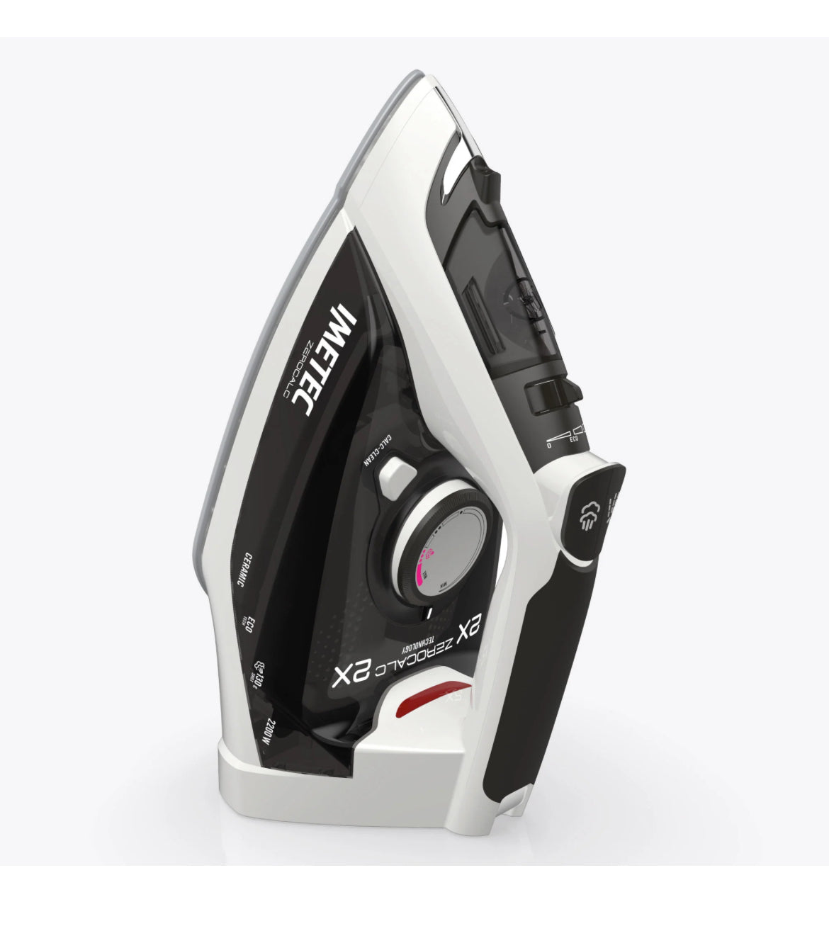 Con il ferro da stiro IMETEC ZEROCALC Z1 2800 stiri bene tutti i capi grazie alla piastra in ceramica ad alta scorrevolezza e a una doppia protezione dal calcare. La tecnologia IMETEC 2X ZEROCALC® riduce la formazione del calcare e massimizza il vapore, grazie all'azione combinata del filtro e della funzione Calc-Clean che rimuove i residui di calcare dalla piastra.