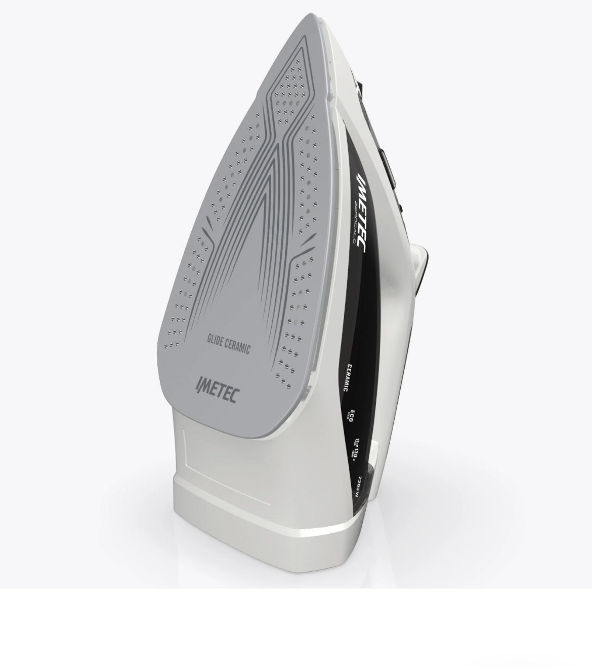 Stiri senza fare fatica con l'impugnatura ergonomica antiscivolo e la piastra Glide Ceramic ad alta scorrevolezza, che diffonde il calore in modo uniforme, antiaderente e resistente ai graffi. 2200 W, colpo vapore da 130 g, vapore regolabile. La tecnologia Imetec Eco riduce i consumi energetici. Con la funzione vapore in verticale rinfreschi giacche o tende.