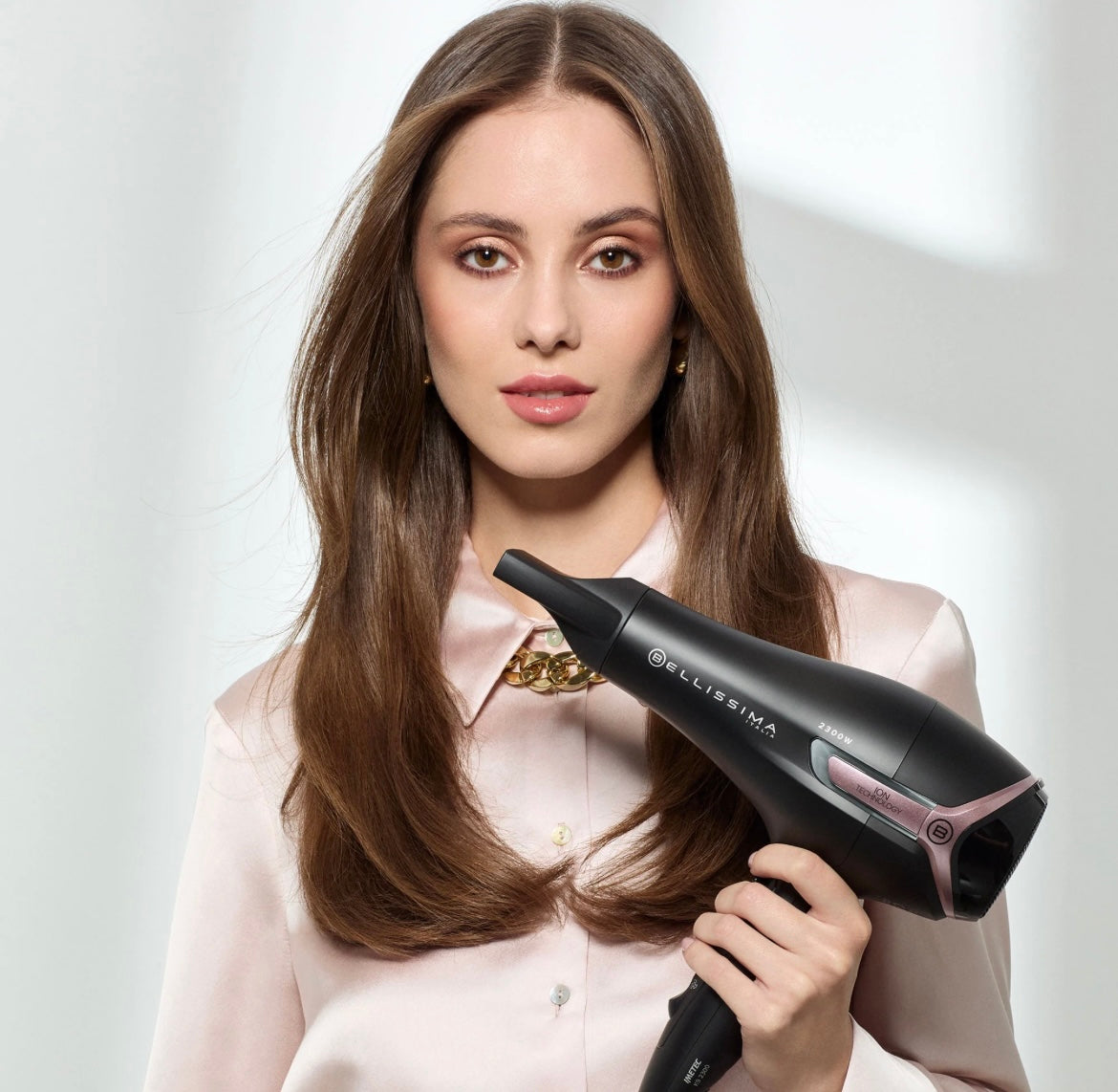 Con l'asciugacapelli K9 2300 puoi asciugare i capelli idratandoli grazie alla tecnologia a ioni: la chioma sarà morbida, luminosa e asciutta senza fatica.