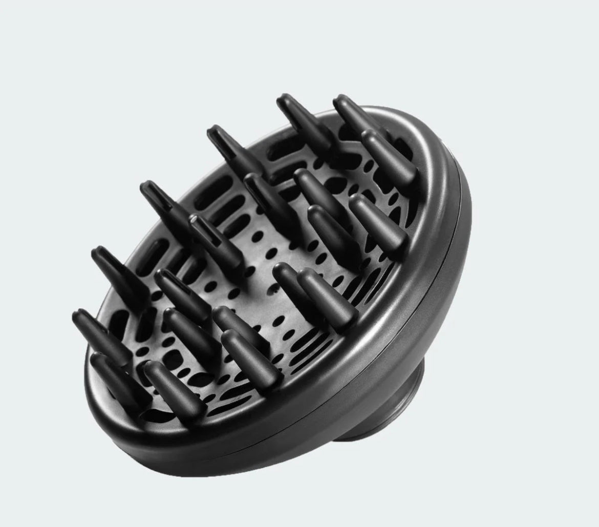 Nella confezione è incluso un diffusore professionale, con 80 fori di uscita dell’aria con dimensione crescente dal centro alla periferia del diffusore, che permette una distribuzione uniforme dell’aria per asciugare con delicatezza i ricci e aiutare a definire la loro forma.