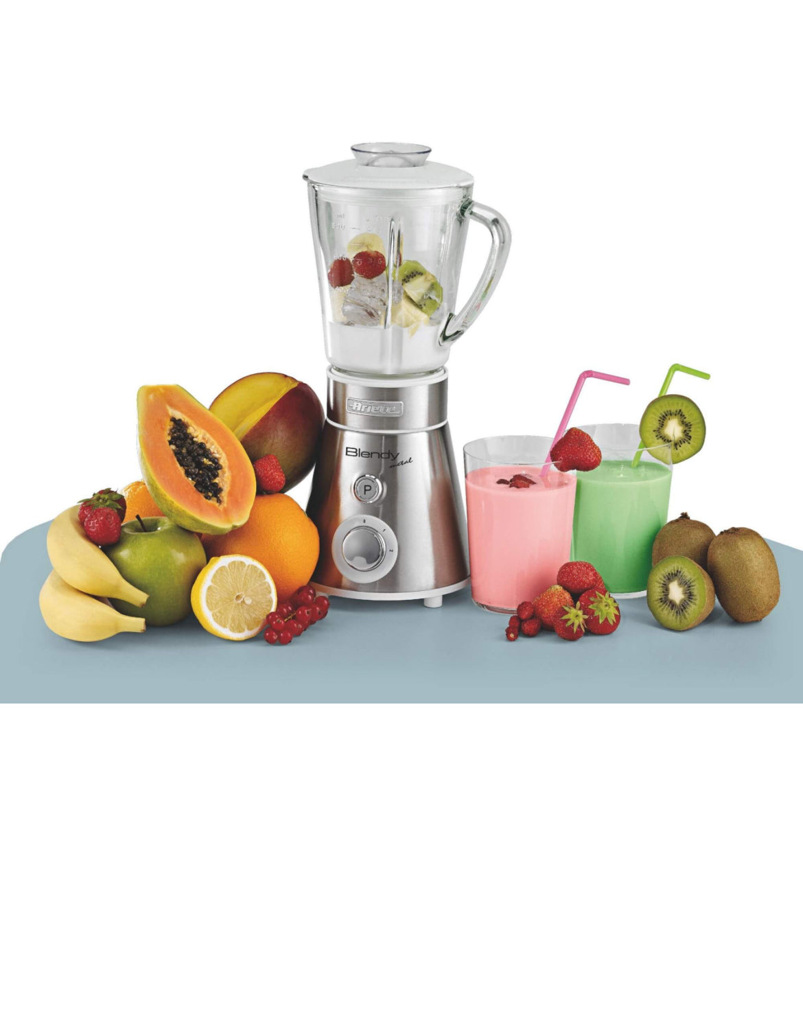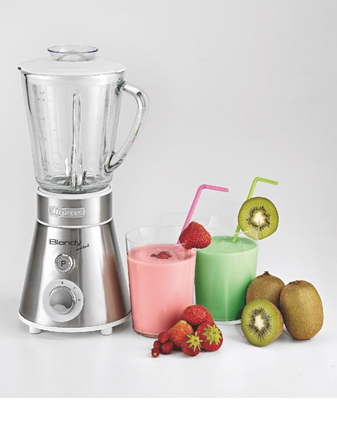 Blendy Metal è un frullatore dalle linee eleganti e prestazioni professionali. Dotato di lame in acciaio e di tazza in vetro, prepara densi e golosi frullati, cocktail, zuppe e creme in pochi secondi.