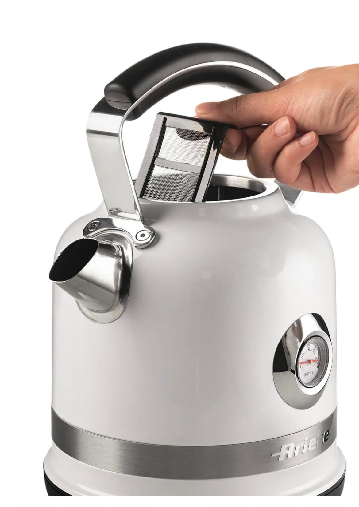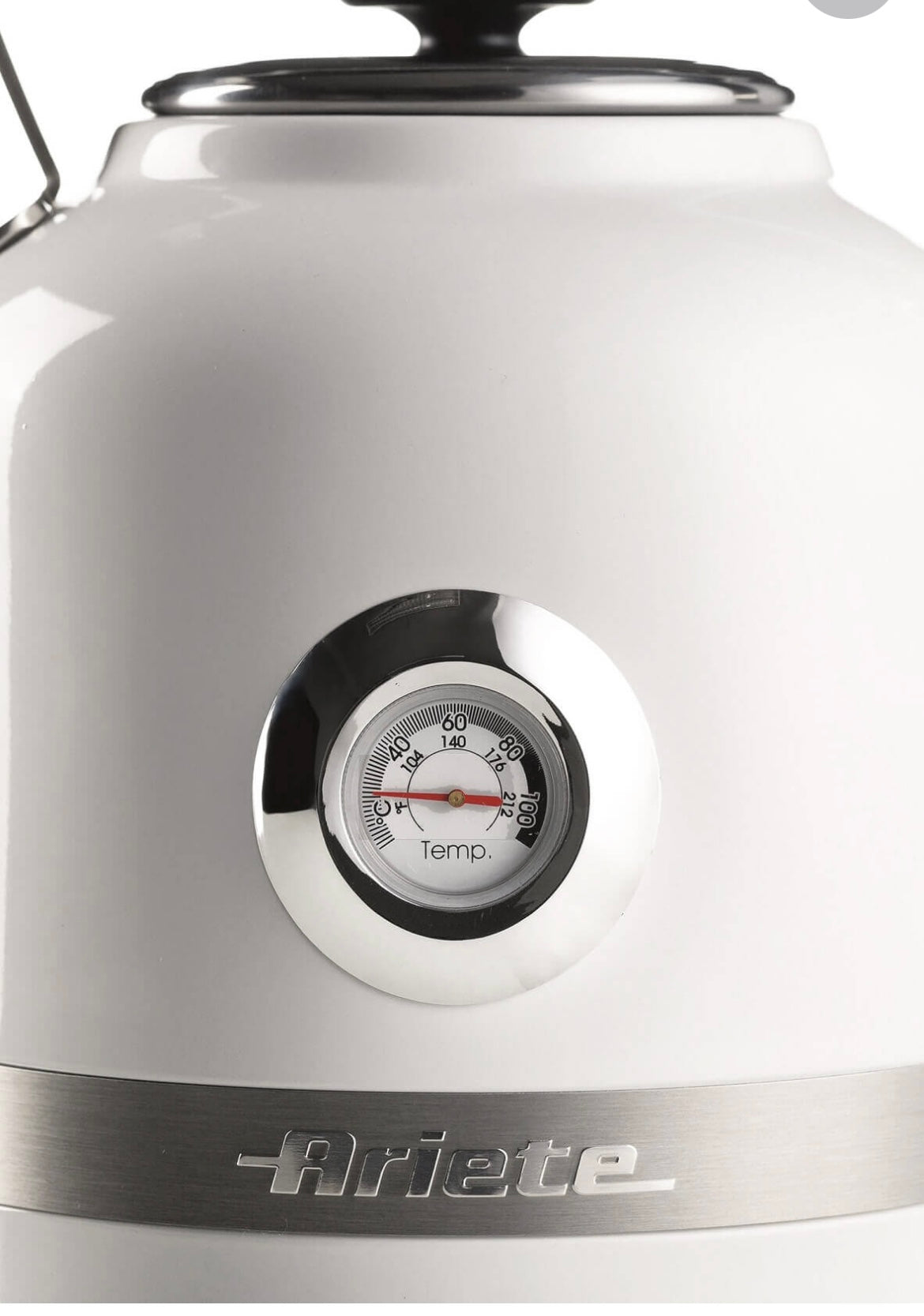 Bollitore Elettrico Moderna Bianco 2854/01 Bollitore Bianco da 1,7 Litri della Linea Moderna Ariete. Termometro esterno. Filtro rimovibile. Autospegnimento. Un tocco di stile nella tua cucina!