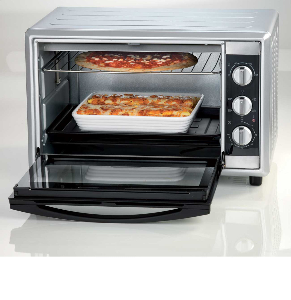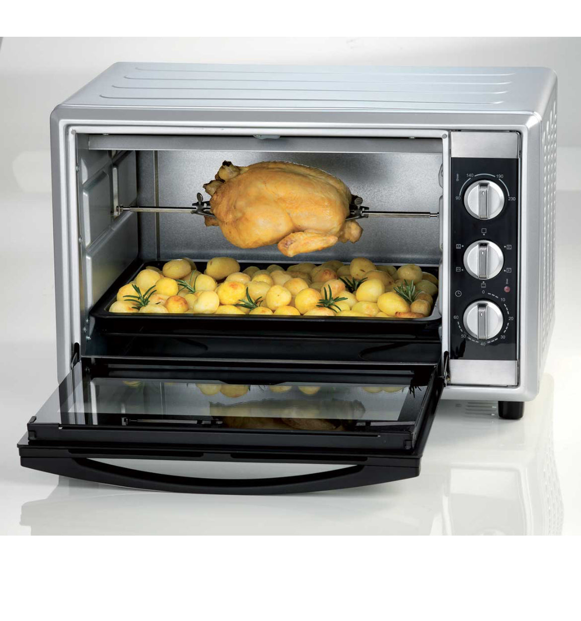 Bon Cuisine 450 0986/11 Forno elettrico 45 Litri con Girarrosto. Funzione statica e ventilata. 6 modalità di cottura. Timer fino a 60’. Temperatura regolabile fino a 230°C.