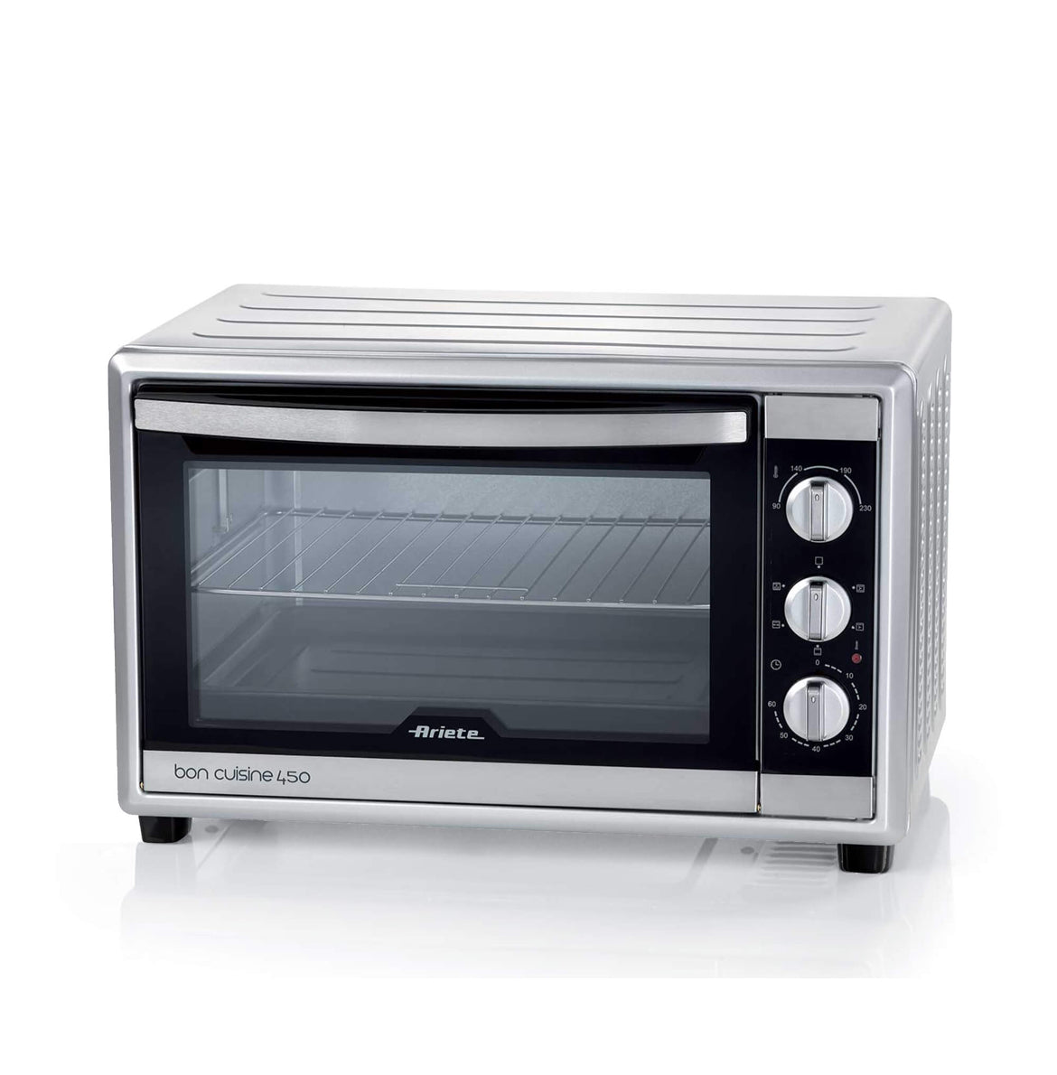 Bon Cuisine 450 è il forno elettrico ventilato dalla capacità di 45 litri, con sei posizioni di cottura, dotato di timer aggiustabile fino a 60 minuti, selettore temperatura fino a 230° C e funzione ventilazione per la cottura combinata dei cibi. E' un forno con girarrostoideale per la preparazione di polli allo spiedo e la luce interna, utile per controllare l’avanzamento della cottura, lo rendono un elettrodomestico indispensabile per la vostra cucina.