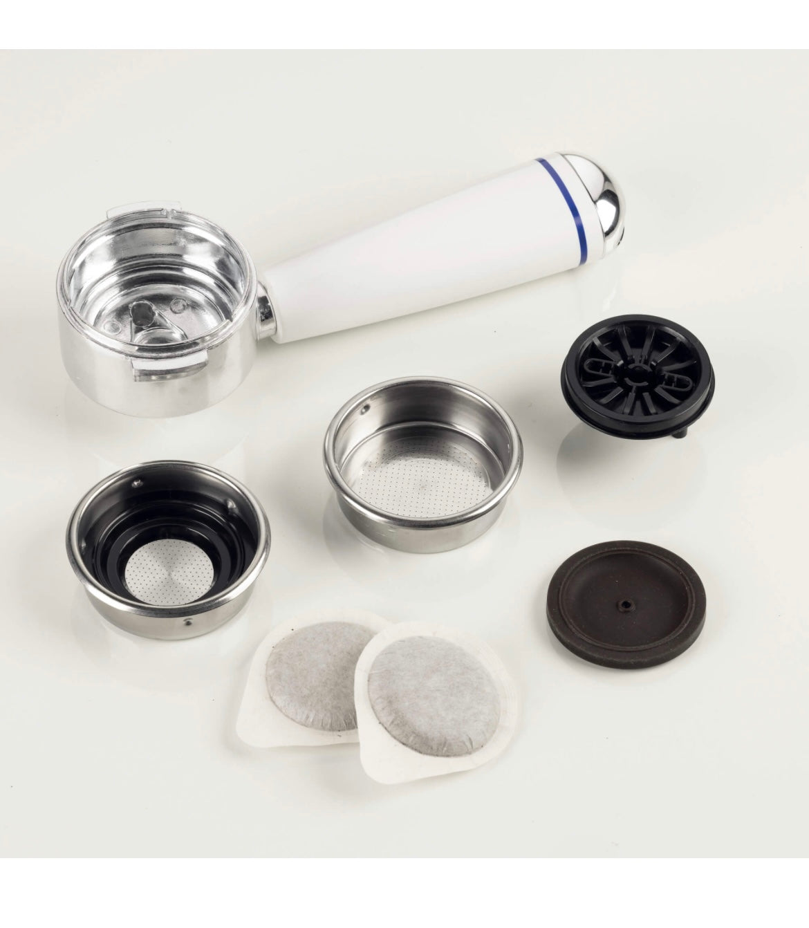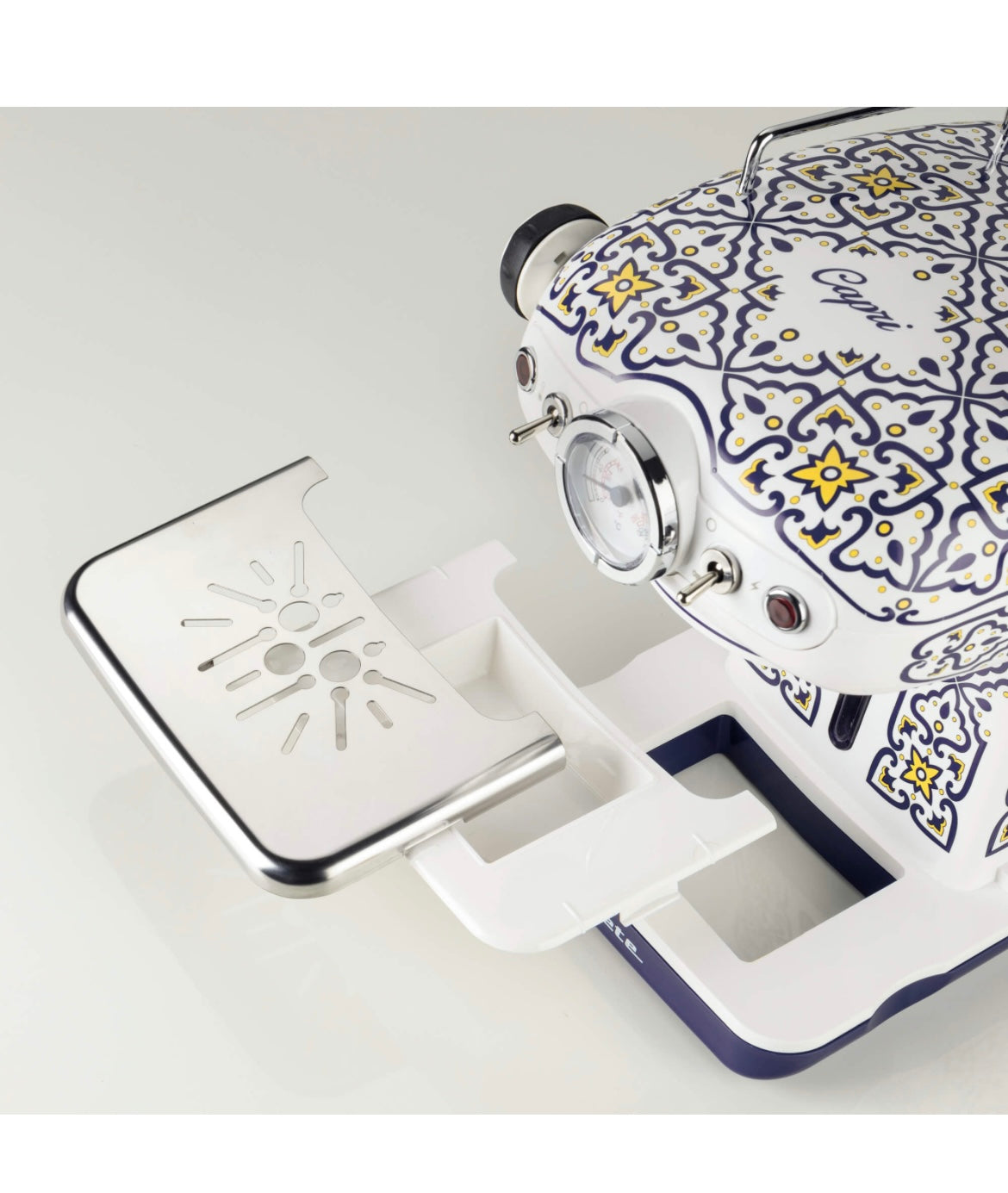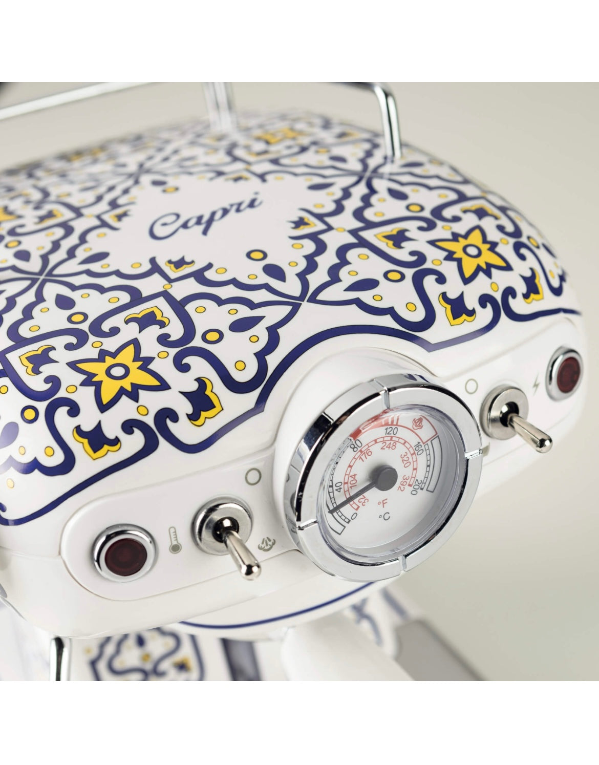 Macchina per caffè espresso Capri dal design elegante, arricchita dalle finiture in metallo. Con i suoi 850W di potenza, 15 bar di pressione, portafiltro per cialda e polvere (1 e 2 tazze), vassoio e contenitore acqua estraibili, la macchina per espresso, ma anche macchina da caffè e da cappuccino permette di gustare a casa caffè e cappuccini cremosi e intensi come quelli del bar. Macchina da caffè Capri è anche macchina caffè per cialde, amiche dell'ambiente.