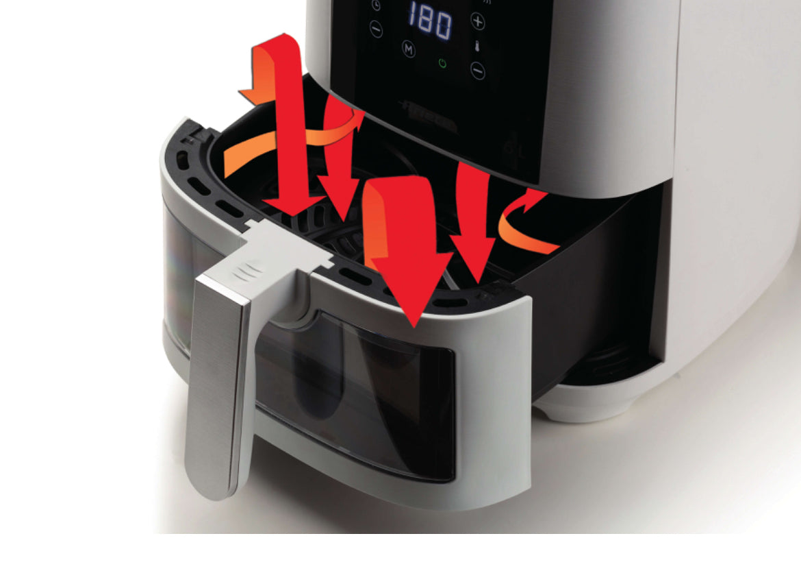 La camera ad aria di Friggitrice ad Aria 6L abbraccia il cibo a 360° e crea le tue pietanze preferite, dolci e salate, senza grassi aggiunti