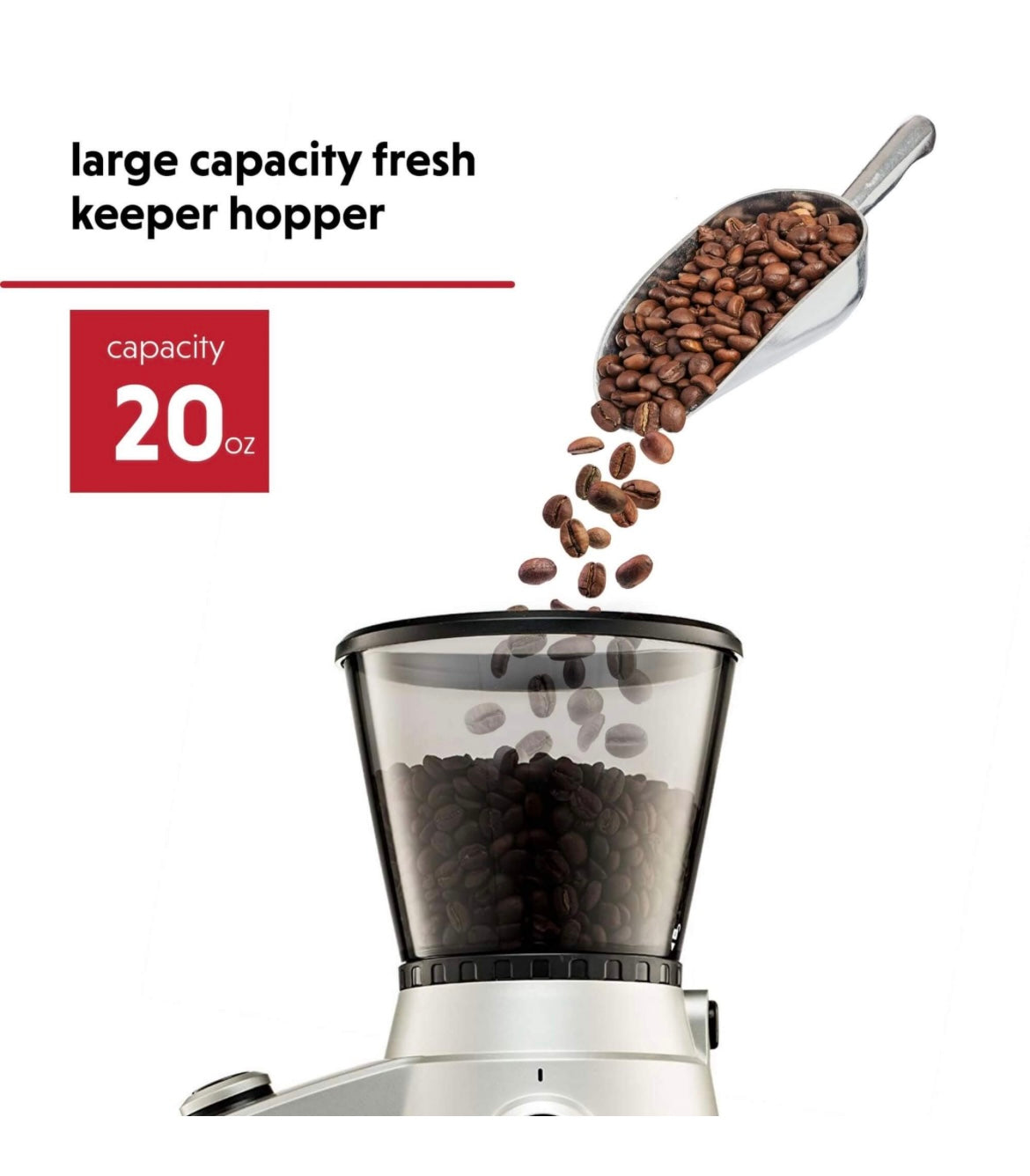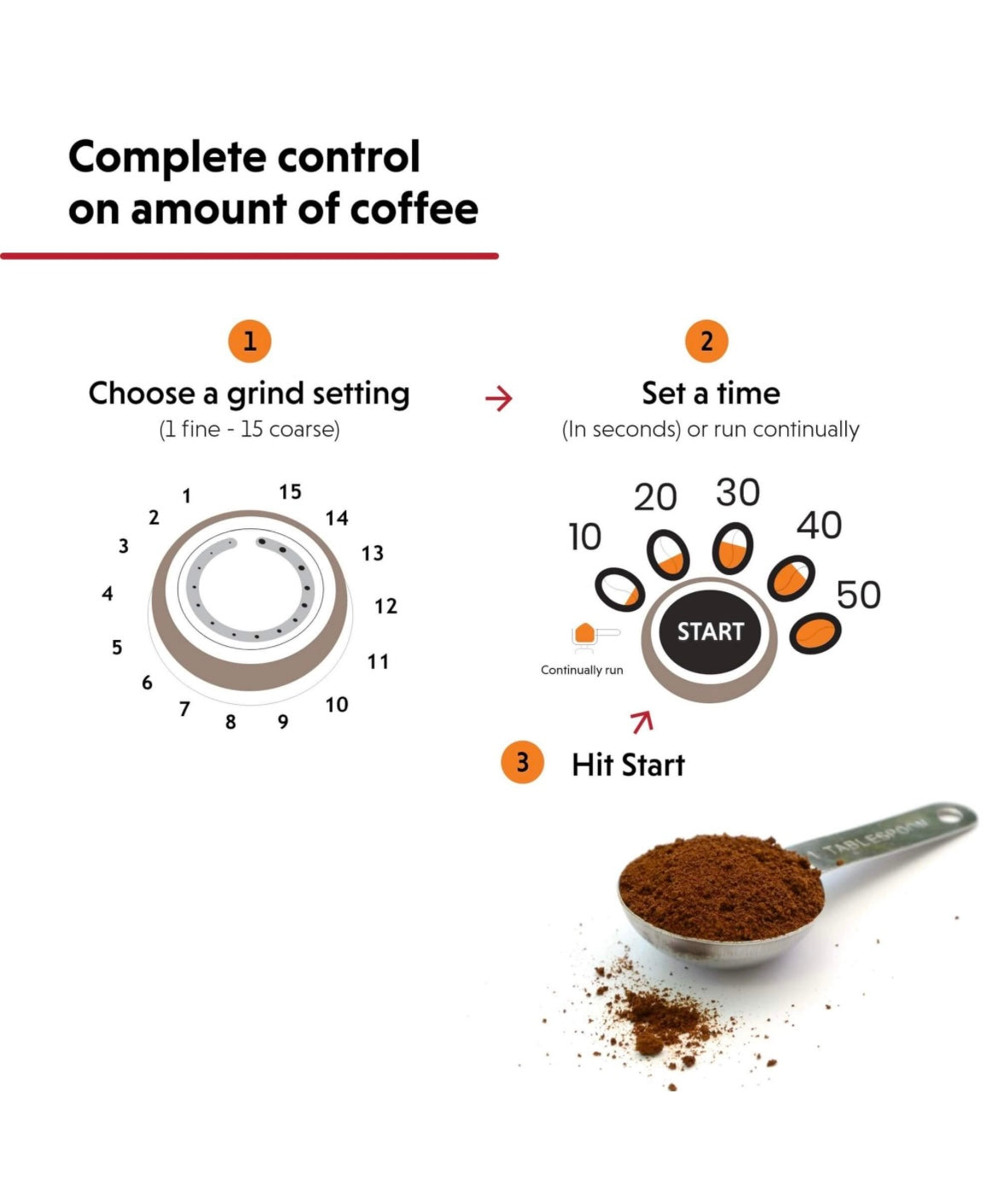 Macinacaffè dal look elegante e compatto. Grazie alle robuste macine coniche in acciaio inox e ai 15 livelli di macinatura assicura una macinatura perfetta sia per caffè Americano che espresso.