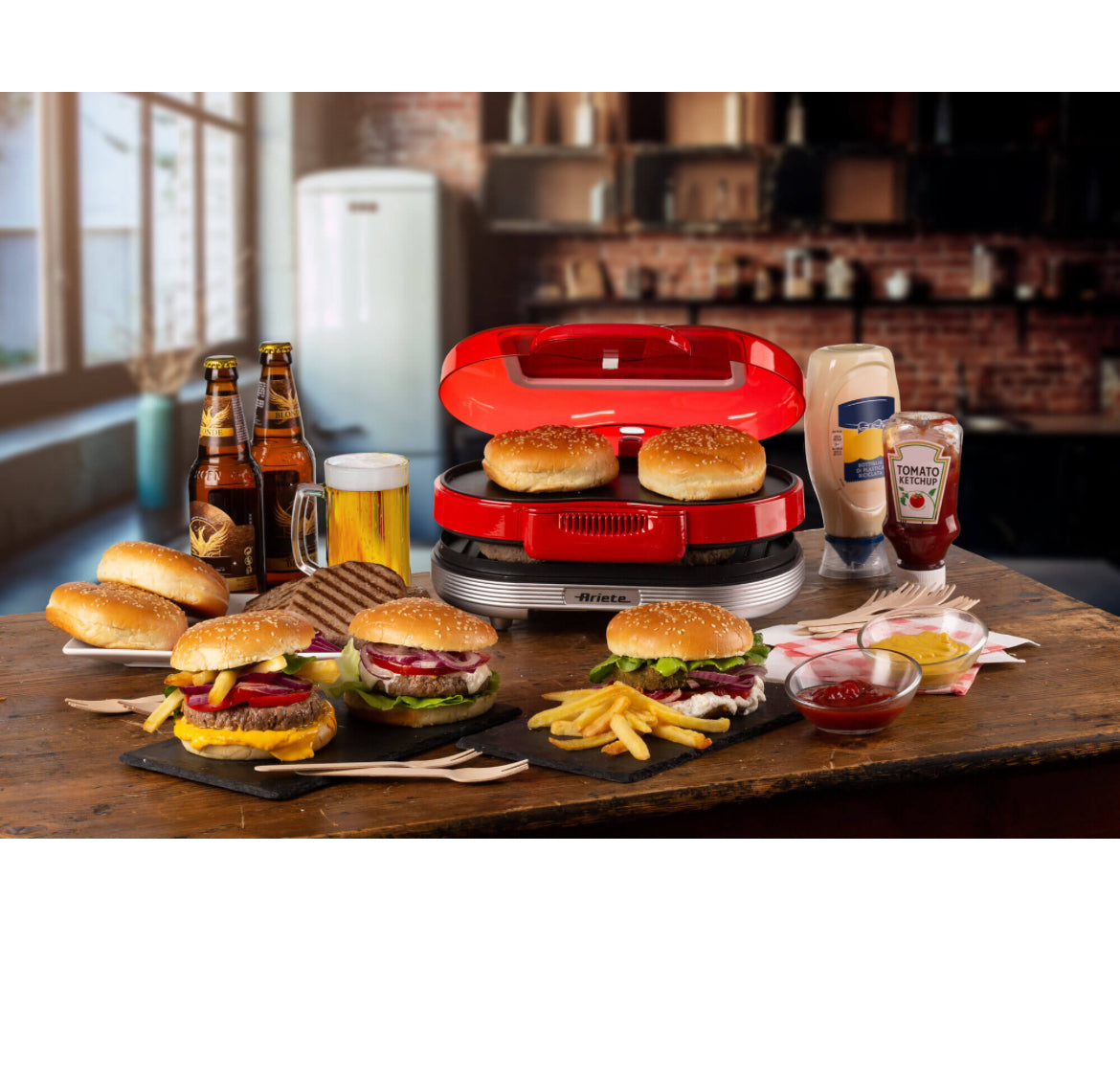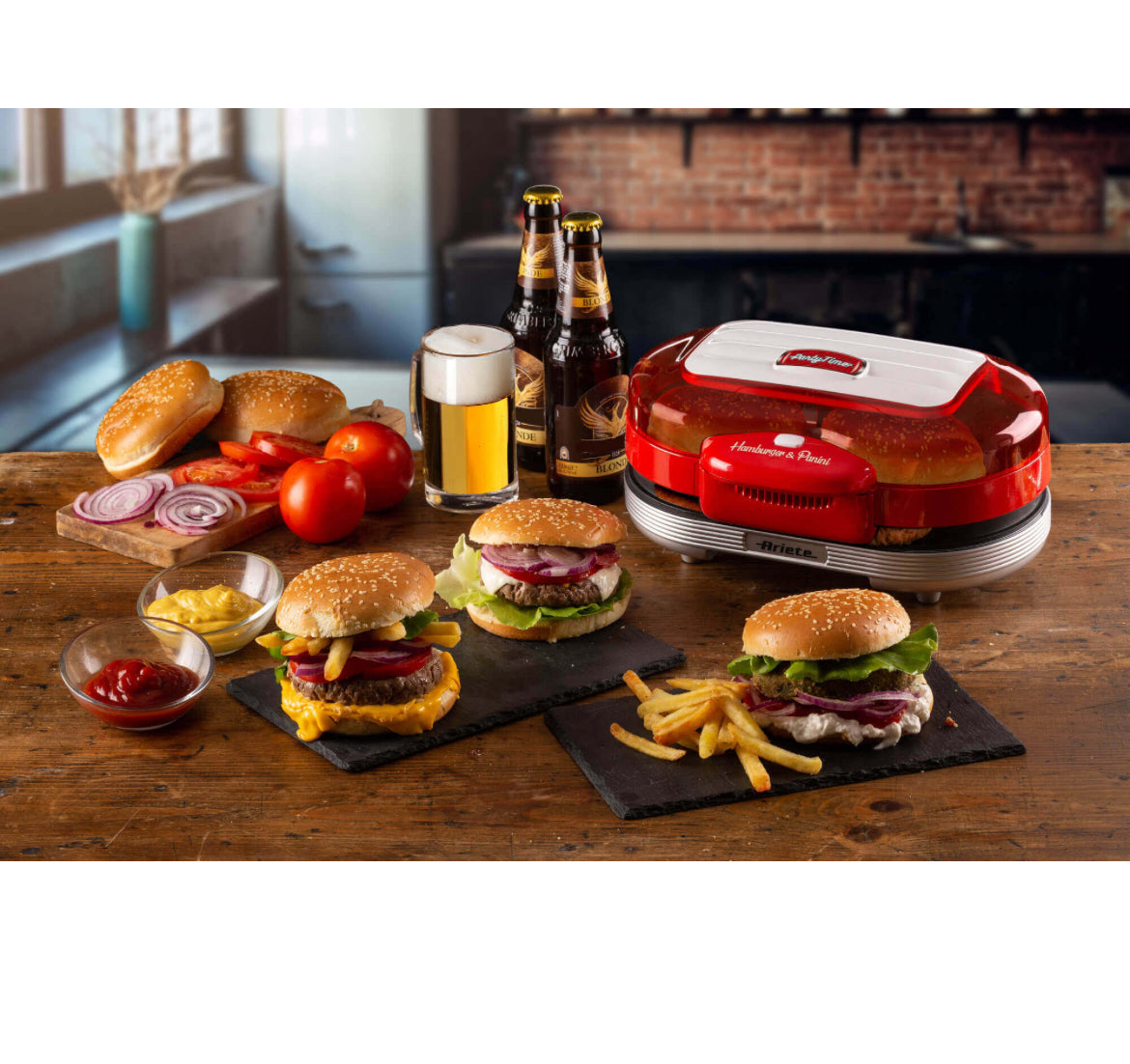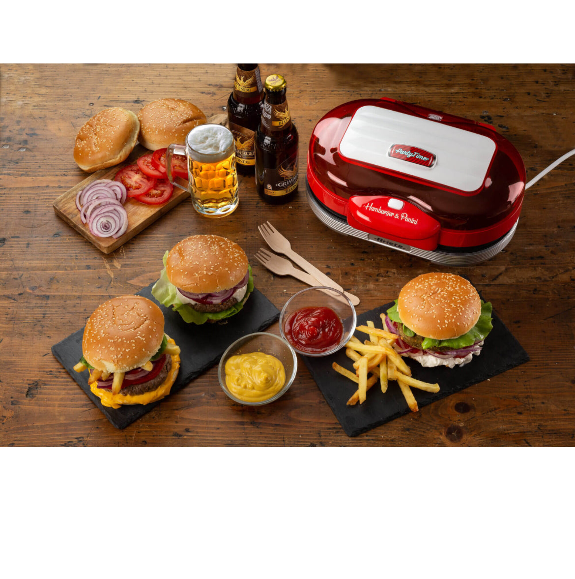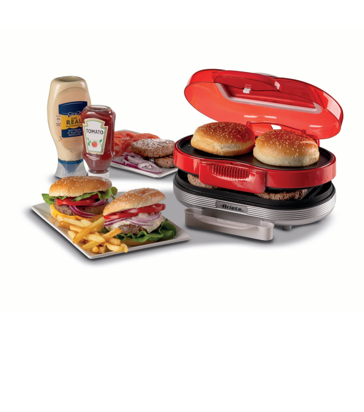 Hamburger Maker Party Time Rosso 0205/00 Doppie piastre antiaderenti per panini e hamburger. Scalda e griglia. Rosso