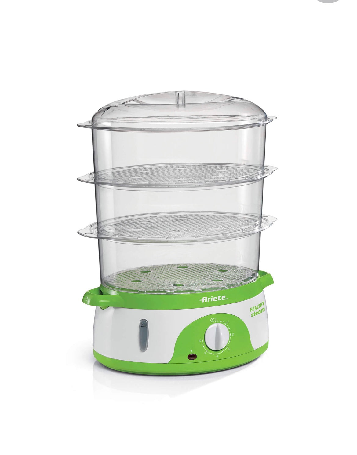 Con la vaporiera Healthy Steam di Ariete, la cottura a vapore non avrà più segreti, perché potrai cuocere in pochi minuti riso, carne, pesce, crostacei, verdure e uova, ottenendo sempre un sapore corposo e intenso, senza dispersione di sostanze nutritive importanti per la tua dieta. Con i 3 cestelli in dotazione potrai cuocere tante pietanze contemporaneamente, inoltre avrai a disposizione anche un comodo contenitore per la cottura del riso a vapore, perfetto per preparare sushi o piatti della tradizione asiatica. Il serbatoio della vaporiera è facile da riempire anche durante il funzionamento, con il livello dell’acqua visibile. In soli 40 secondi il vapore sarà pronto per la cottura: cuoci, siediti a tavola e gusta i tuoi piatti al vapore!
