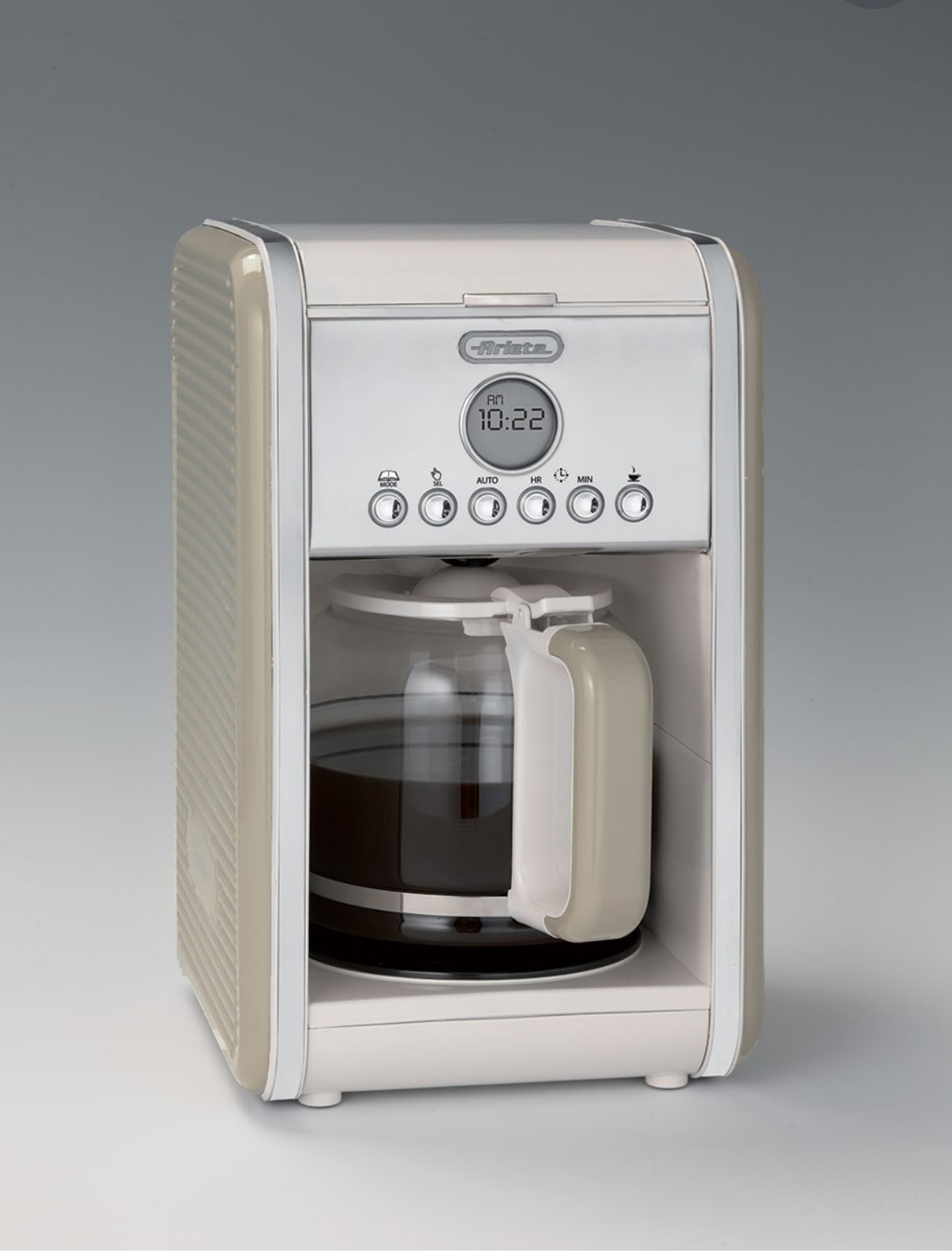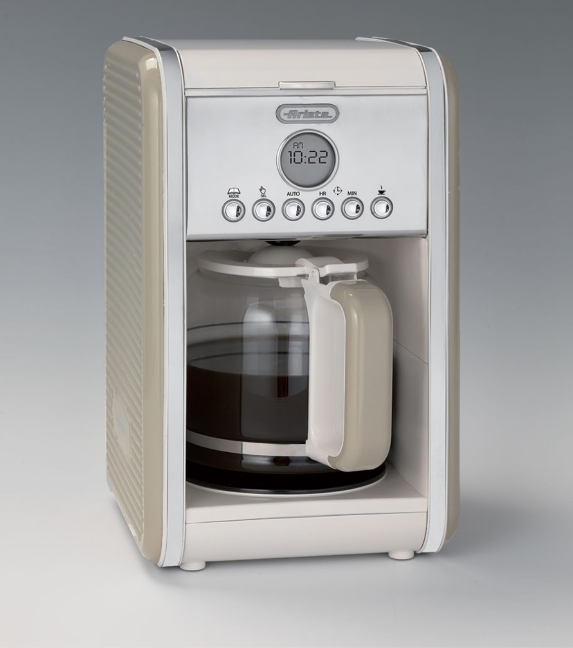 Macchina da Caffè Americano Vintage Beige 1342/03 Macchina per caffè americano, drip coffee con caraffa in vetro da 4-12 tazze. Programmabile fino a 24 ore prima.