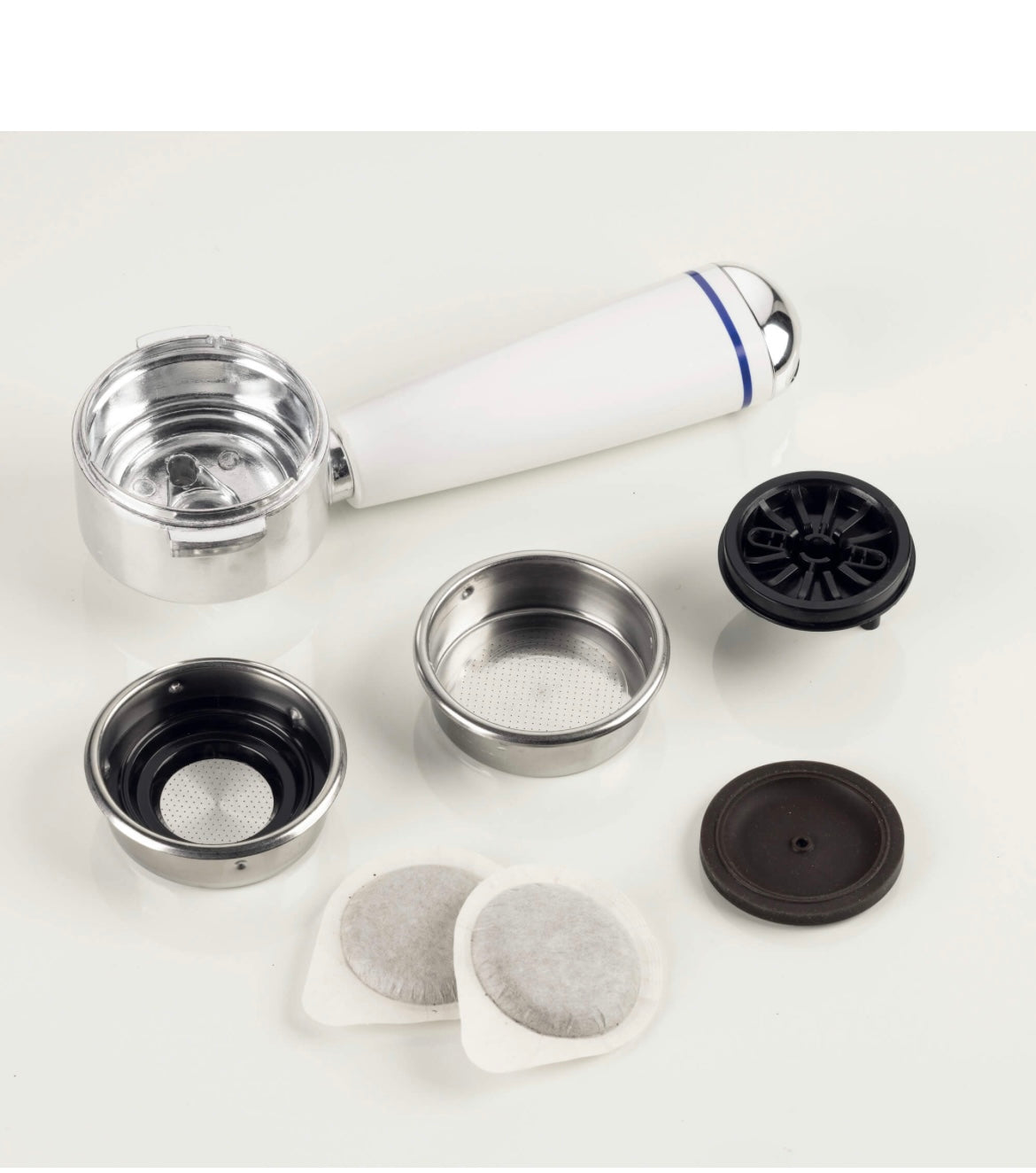 Macchina per caffè espresso Positano dal design elegante, arricchita dalle finiture in metallo. Con i suoi 850W di potenza, 15 bar di pressione, portafiltro per cialda e polvere (1 e 2 tazze), vassoio e contenitore acqua estraibili, la macchina per espresso, ma anche macchina da caffè e da cappuccino permette di gustare a casa caffè e cappuccini cremosi e intensi come quelli del bar. Macchina da caffè Positano è anche macchina caffè per cialde, amiche dell'ambiente.