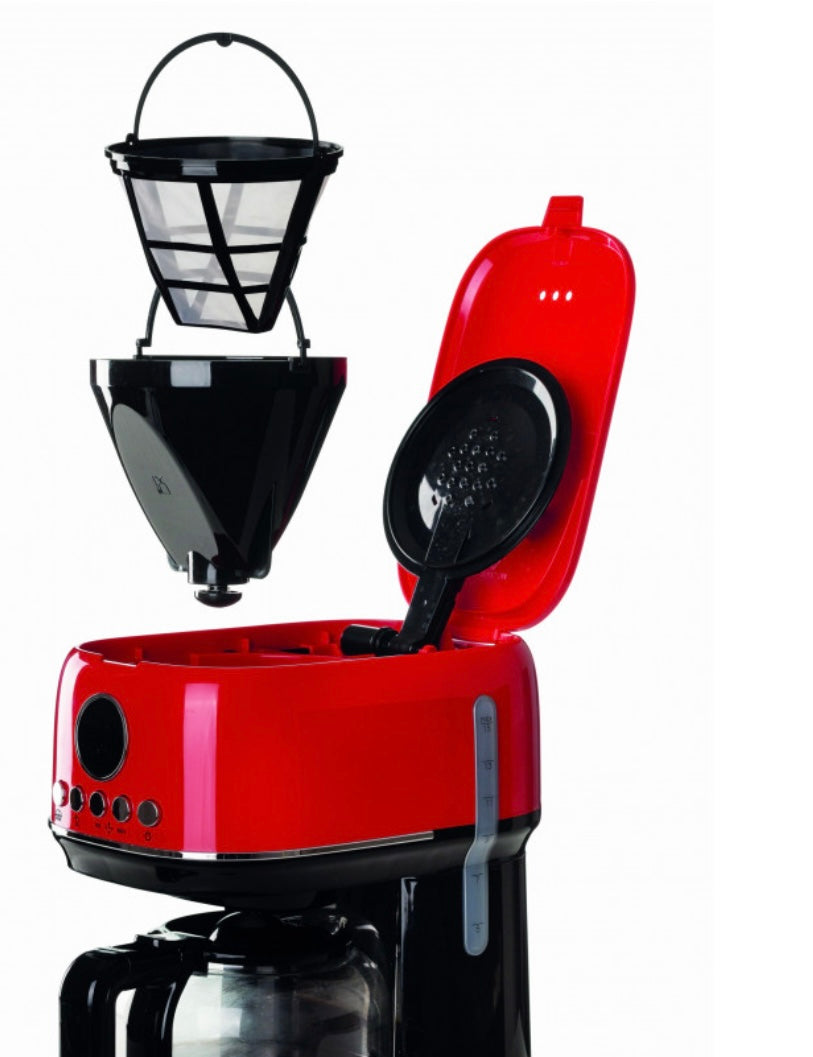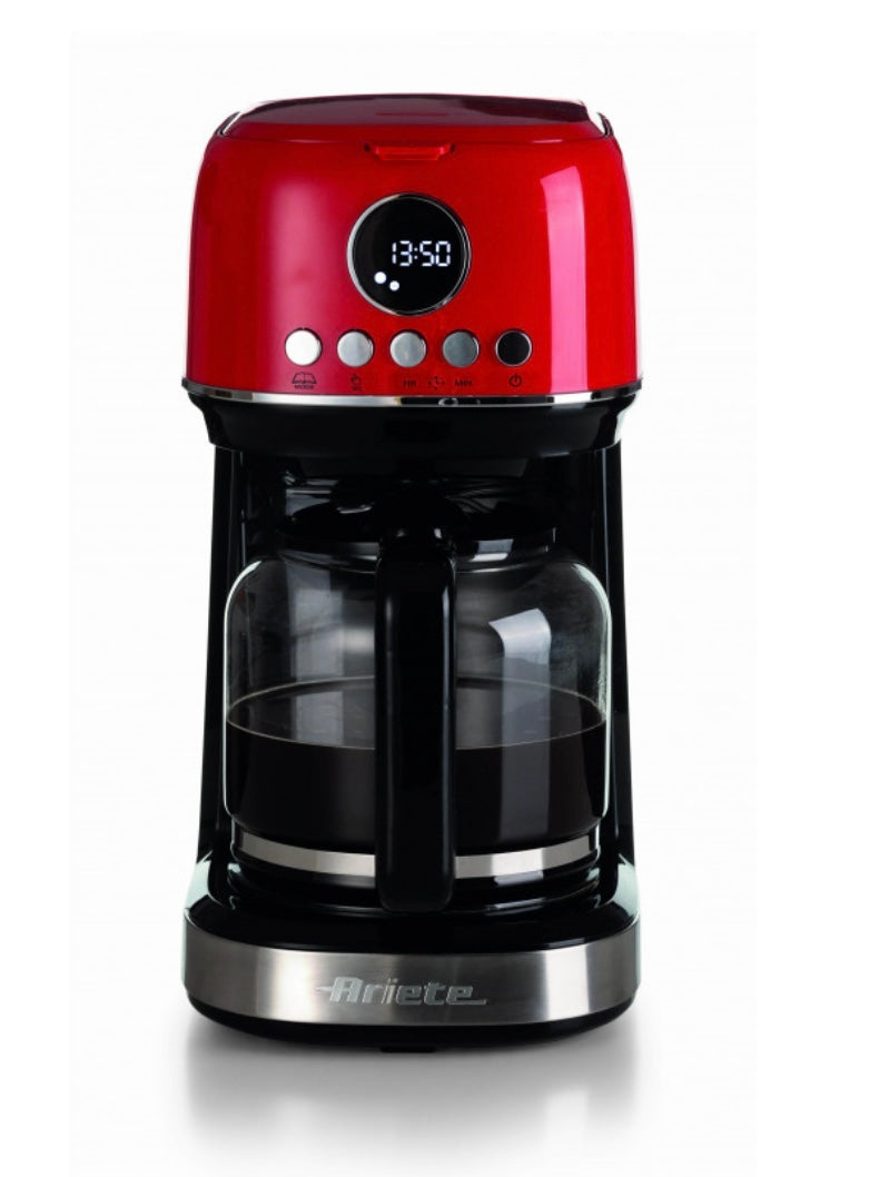 Macchina da caffè con filtro Moderna Rosso 1396/00 Macchina per caffè americano, drip coffee con caraffa in vetro temperato da 15 tazze. Programmabile fino a 24 ore prima. Pannello LCD e Base riscaldante