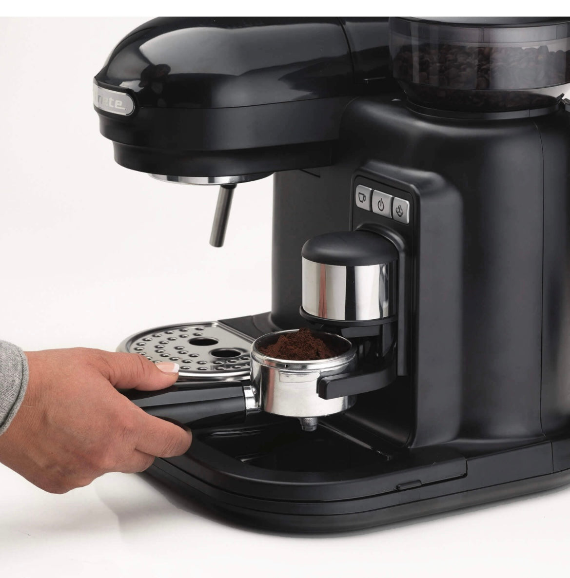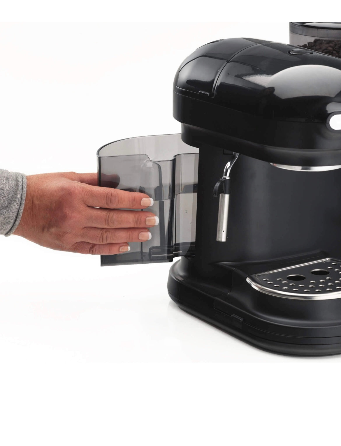 Macchina da caffè espresso con macinacaffè Moderna Nero 1318/02 Macinacaffè con erogatore. Filtro per 1 o 2 tazze.15 bar pressione. Autospegnimento. Cappuccinatore. Nero