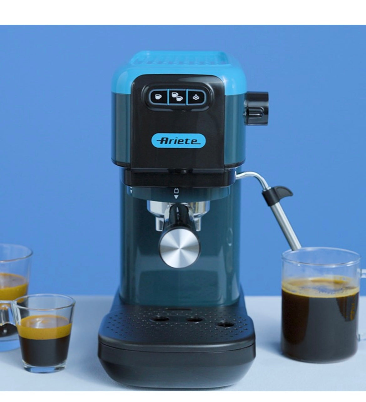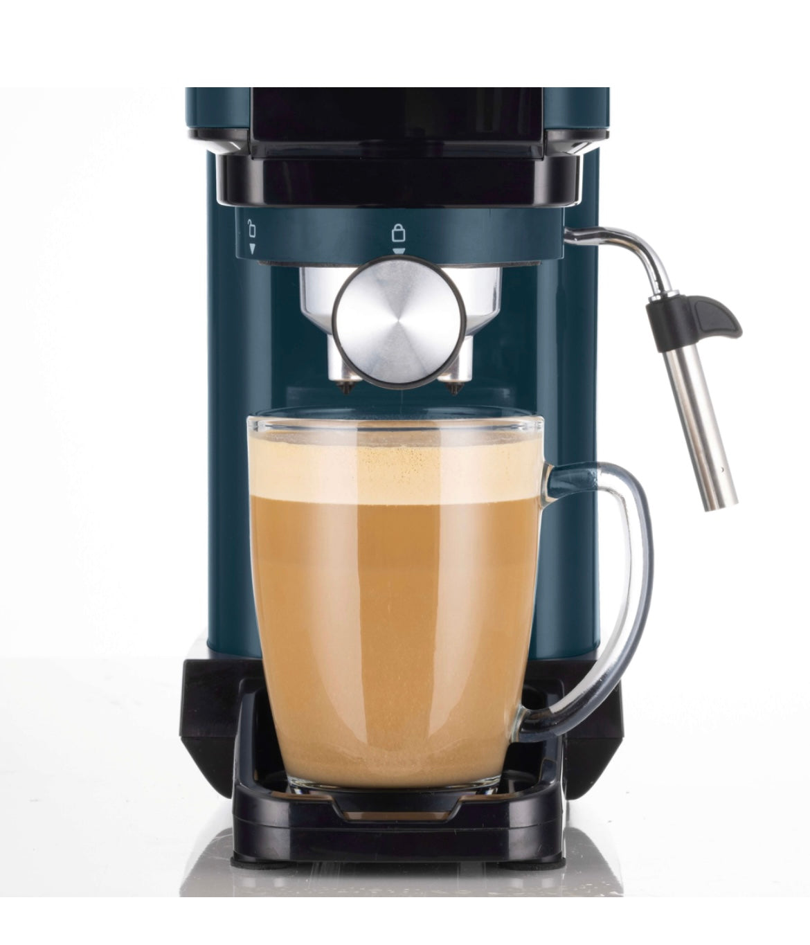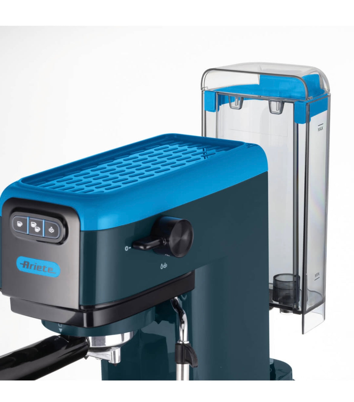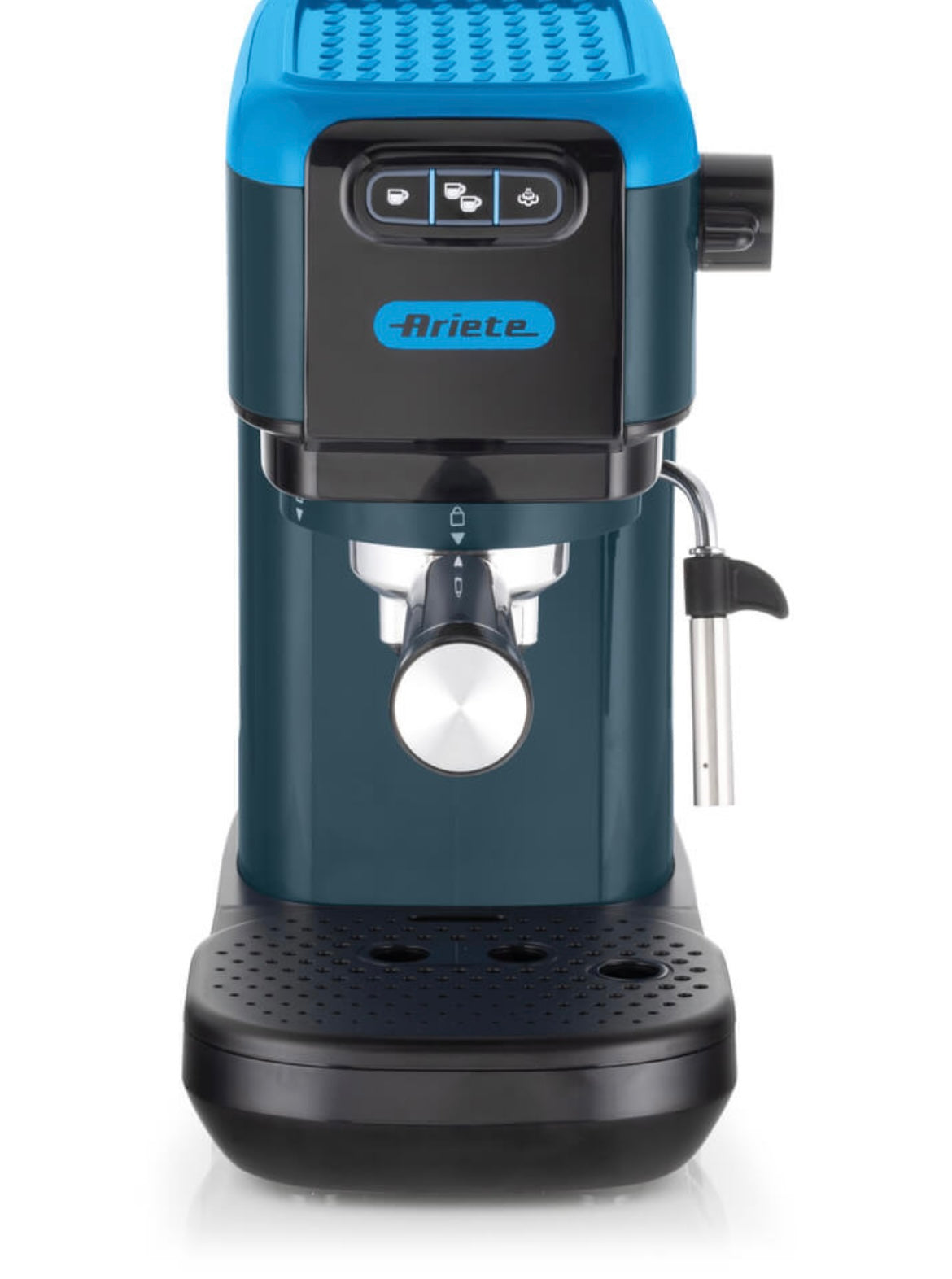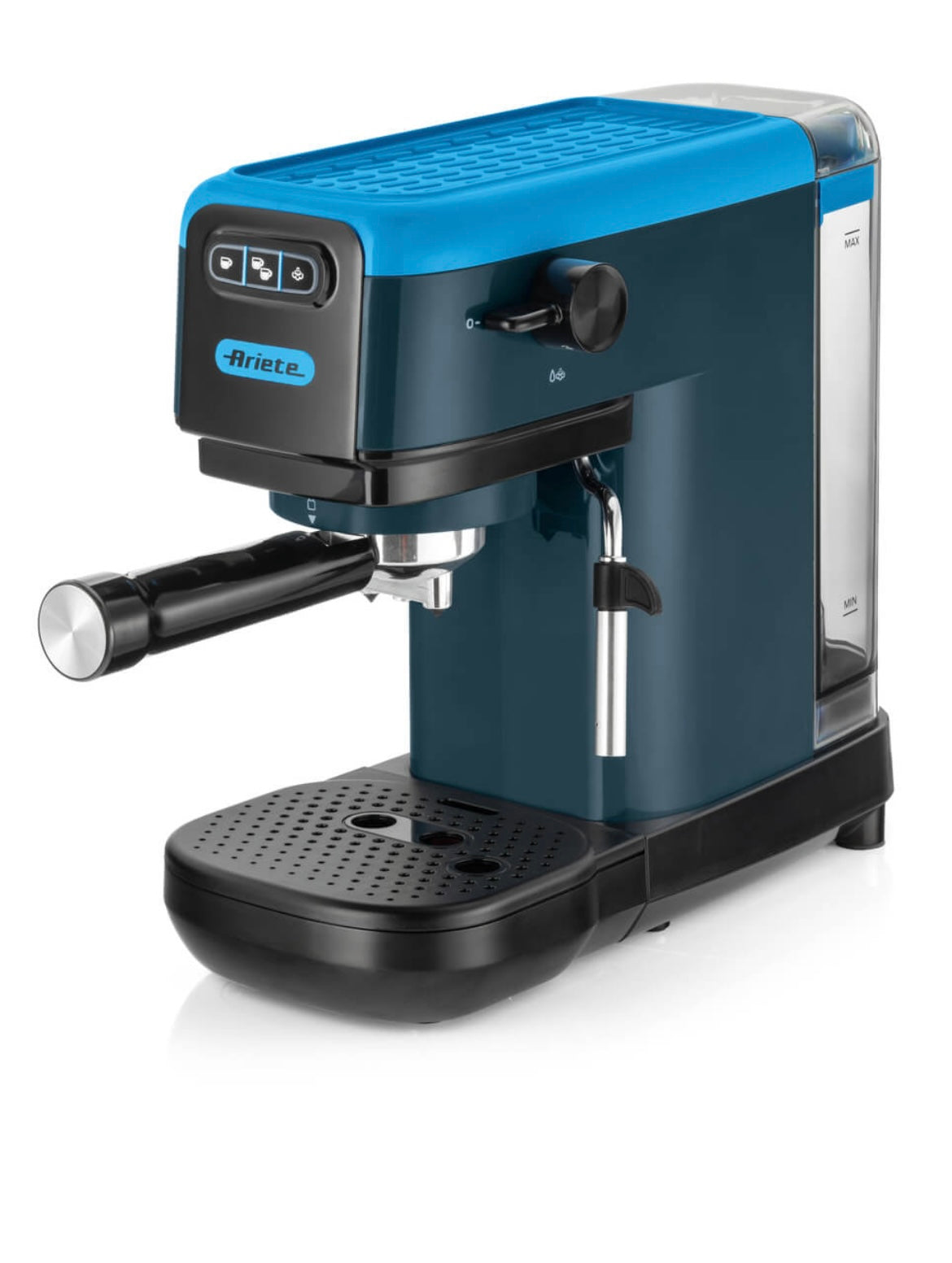 Macchina da caffè espresso Sky Blue 1399/18 Macchina dal design super slim, 14 cm di larghezza, per caffè, cappuccini, tè e tisane. Compatibile con caffè in polvere e cialde ESE. Blu
