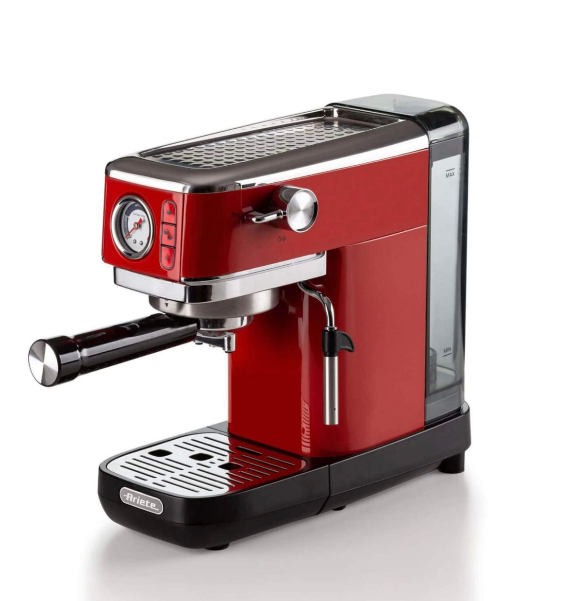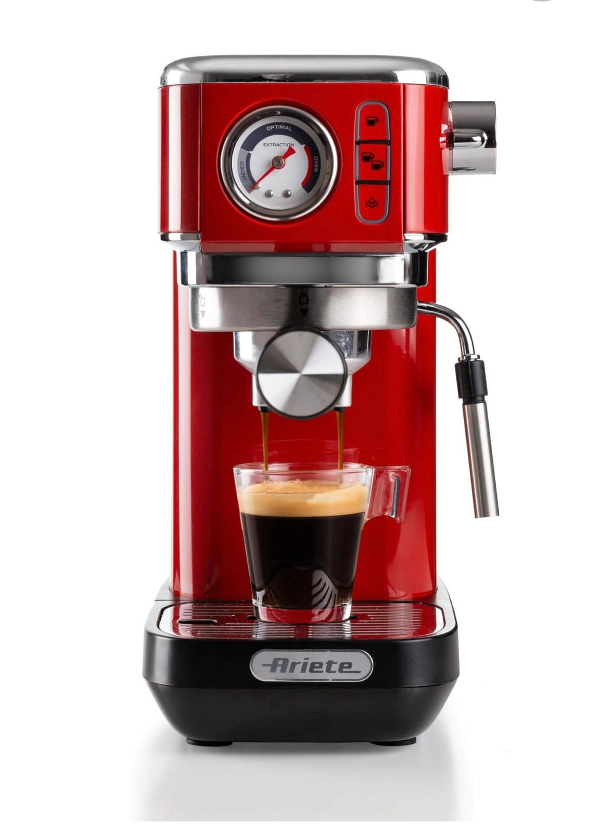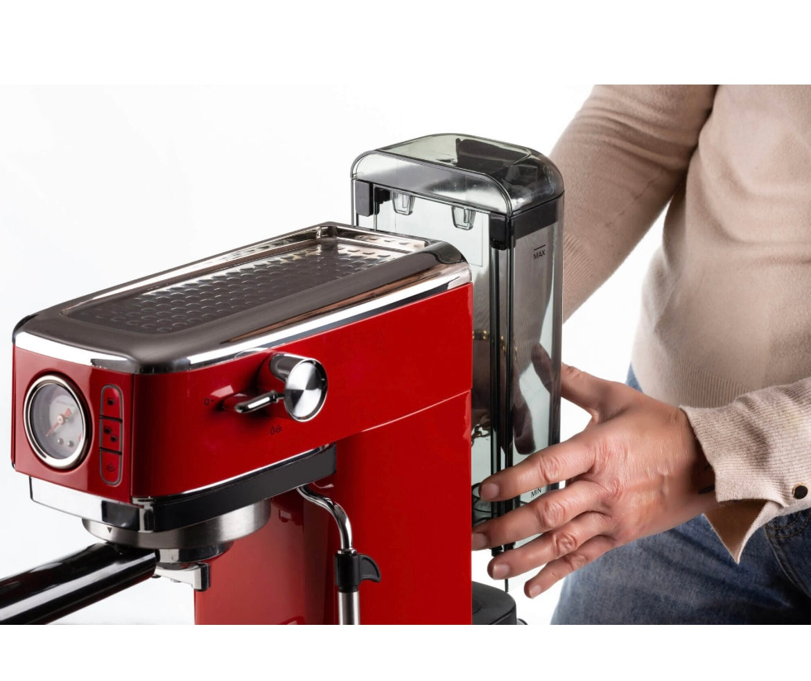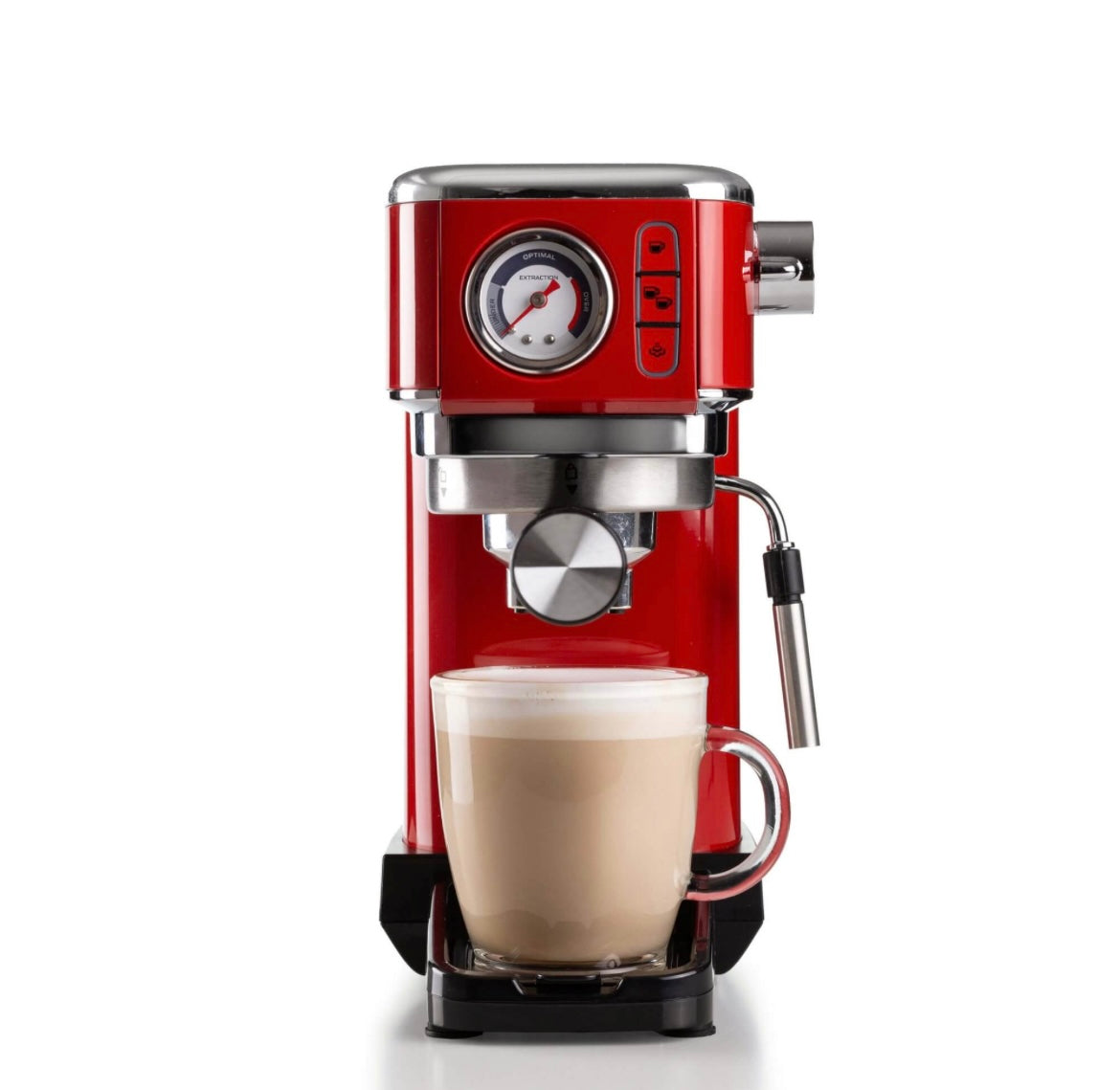 Macchina per caffè espresso Metal con manometro 1381 Rosso 1381/13 Solida preziosa e compatta per caffè gustosi e cappuccini cremosi grazie al dispositivo Maxi-Cappuccino. Manometro integrato. Compatibile con polvere di caffè e cialde ESE. Erogazione acqu