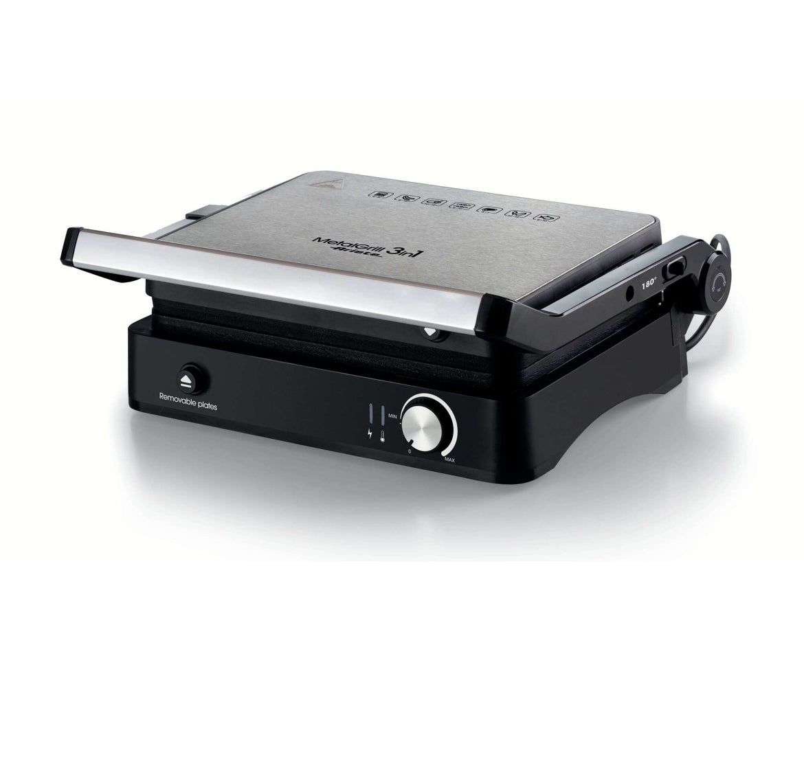 MetalGrill 3in1 è molto versatile: con l’apertura a libro a 180°, ottieni una superficie ampia per cuocere e riscaldare grandi quantità di cibo
