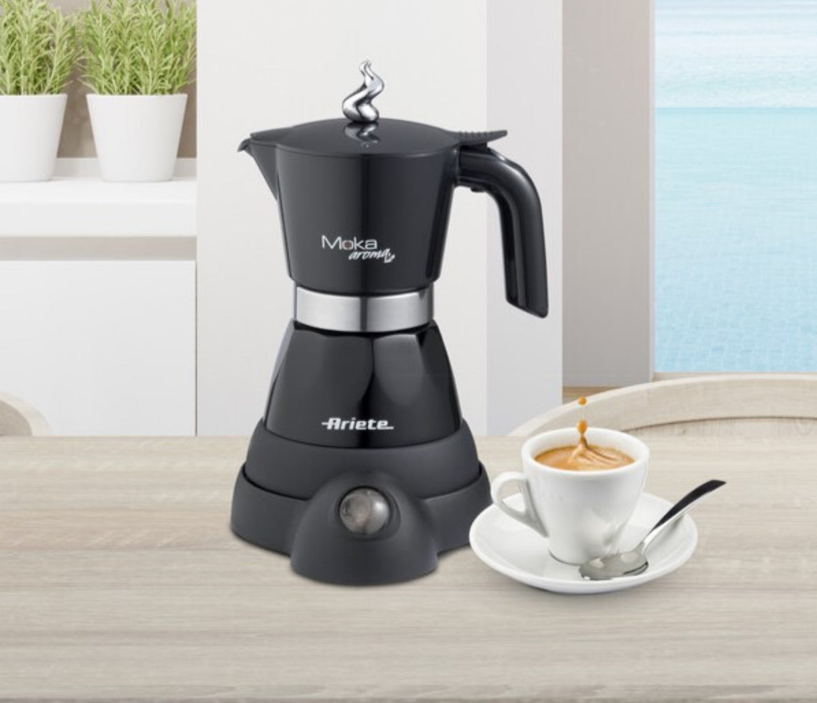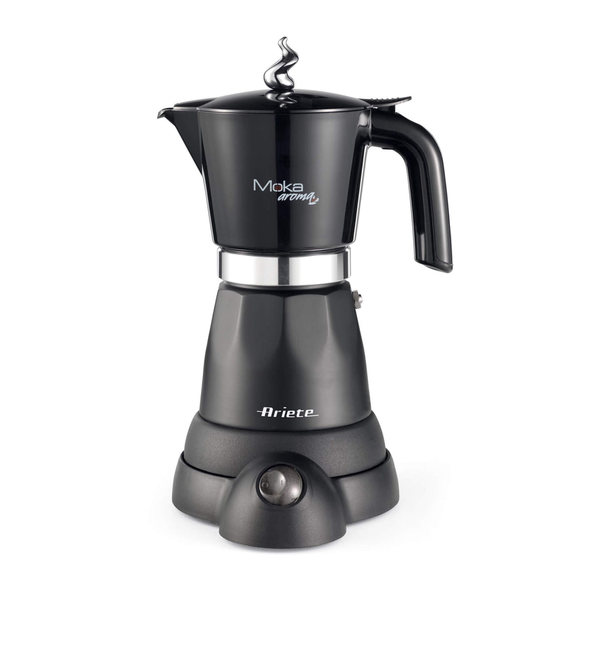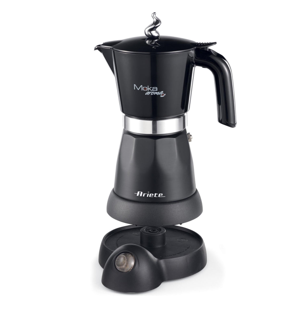 Moka elettrica da 6 tazze con adattatore 4 tazze e dal design accattivante. Dotata di base indipendente, Moka aroma è cordless e con base di appoggio a 360°. Una volta terminata l’erogazione, la Moka passa in stand by e il caffè si mantiene caldo per 30 minuti.