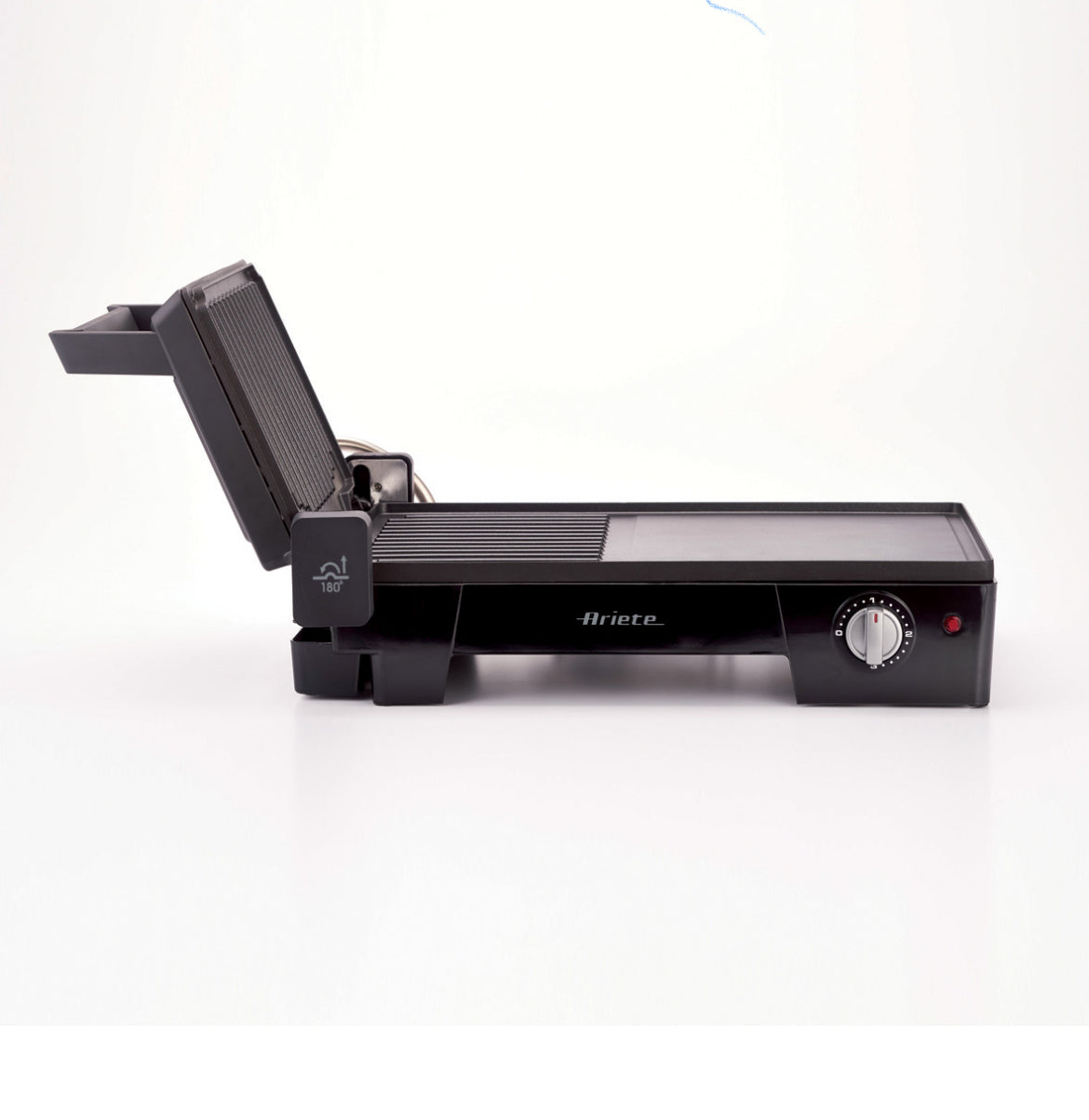 Multi Grill 3 in 1 1916/10 Griglia elettrica da tavolo 3 in 1 con piastra liscia e rigata, piastra a contatto, barbecue estendibile. Rotazione del coperchio a 180°. Termostato regolabile.