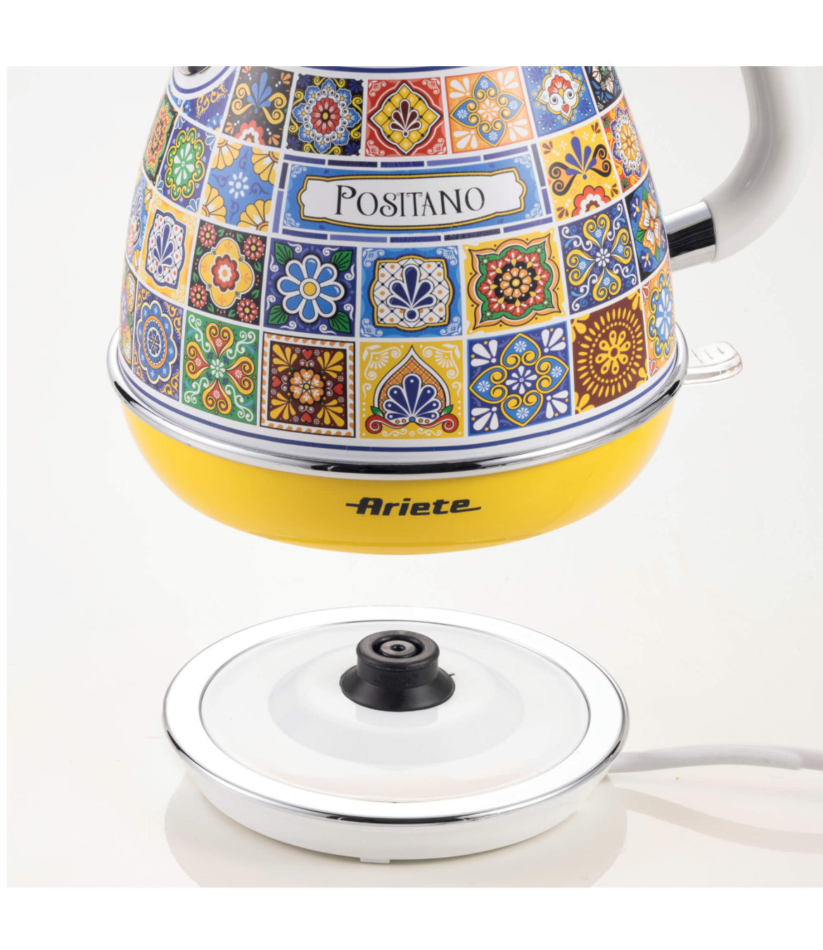 Bollitore Elettrico della linea Positano dalle linee sinuose ed eleganti che richiamano l’arte e la cultura mediterranea, con base cordless e capacità di 1,7 litri, per rendere ancora più intenso il momento della colazione o della pausa pomeridiana. Il Bollitore Elettrico Positano è un vero alleato per gli amanti di the, tisane e bevande calde.