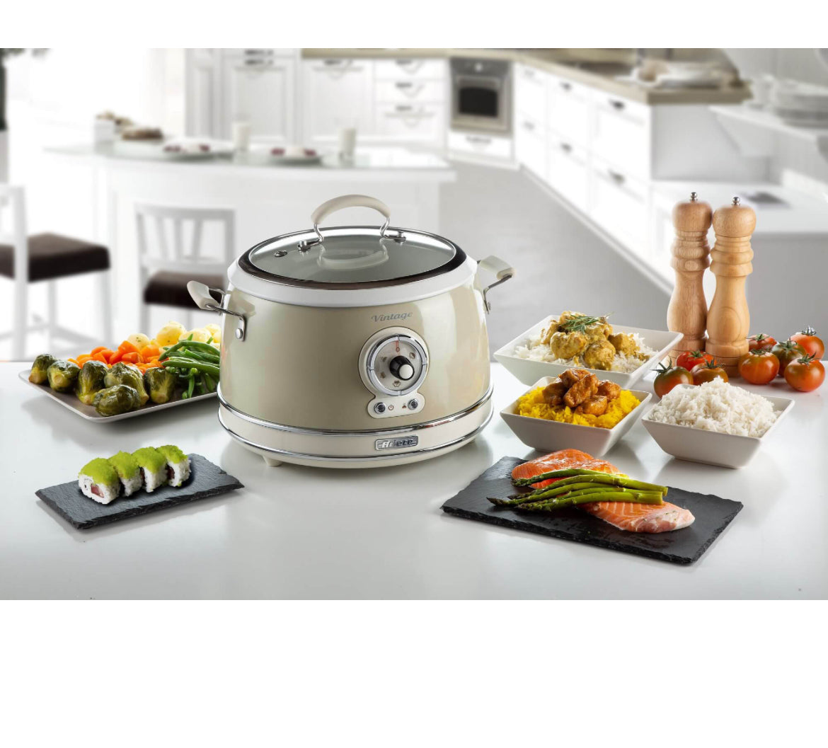 Rice Cooker & Slow Cooker beige 2904/03 Cuociriso elettrico e Slow Cooker con 5 diverse modalità di cottura: riso, sauté, a vapore, riscaldamento e slow cooker. Bowl in ceramica removibile e inseribile in forno a 180° per gratinare e terminare la cottura.