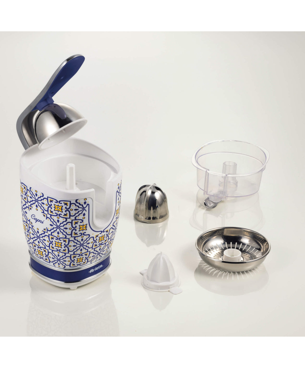 Grazie ai 2 coni in dotazione, potrai spremere qualsiasi agrume: pompelmi, arance, limoni, lime. Divertiti a creare un mix di spremute per tutti i gusti con lo spremiagrumi Capri di Ariete.
