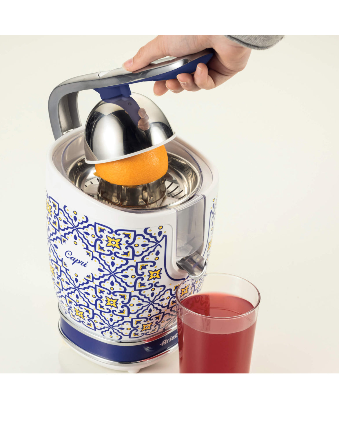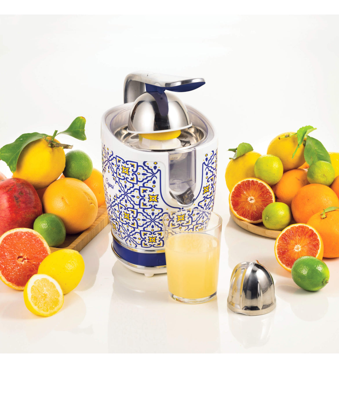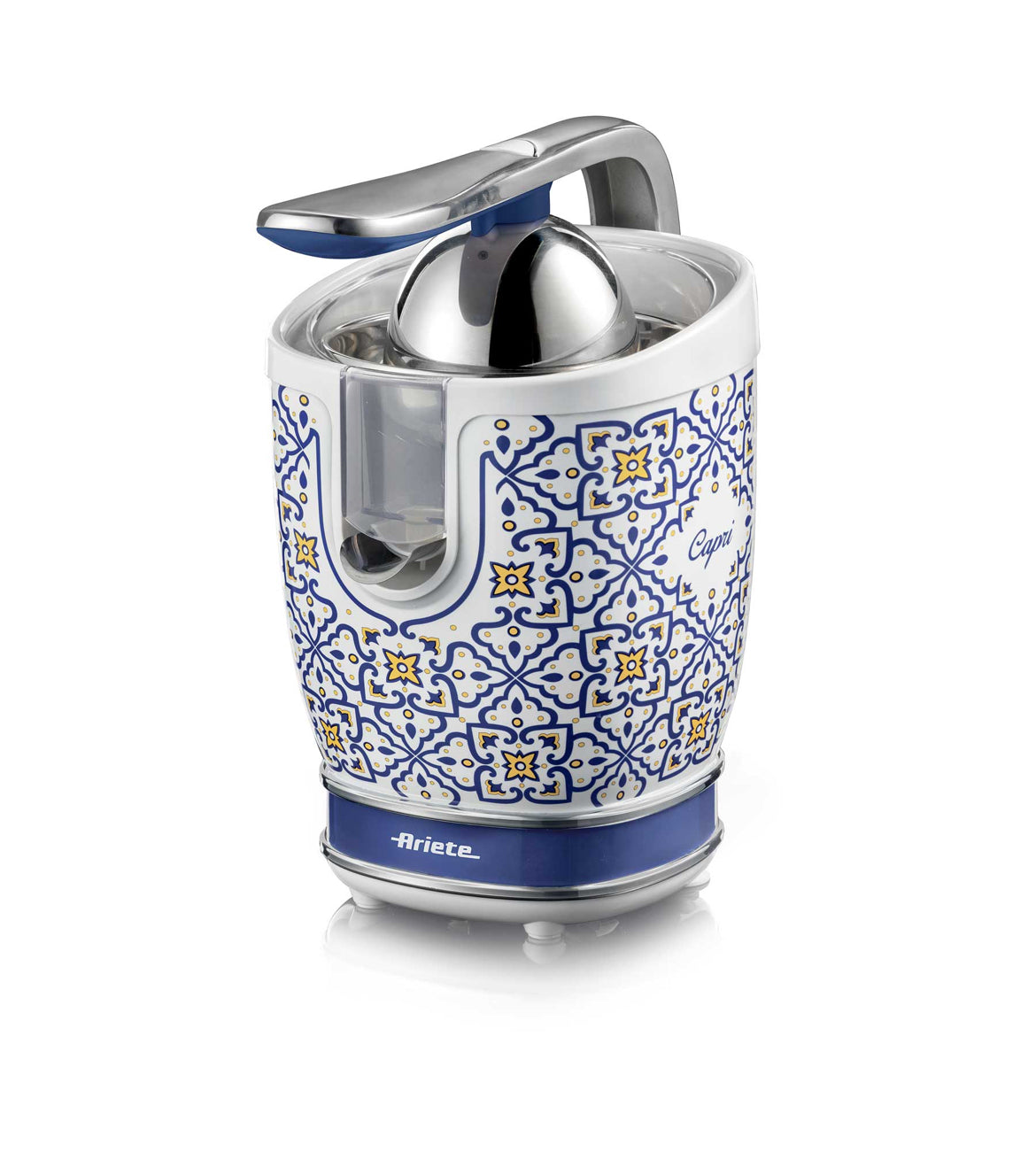 Spremiagrumi Capri 0413/0C Spremiagrumi Elettrico con Leva. Corpo in metallo, 2 coni per frutti grandi e piccoli e beccuccio salvagoccia.