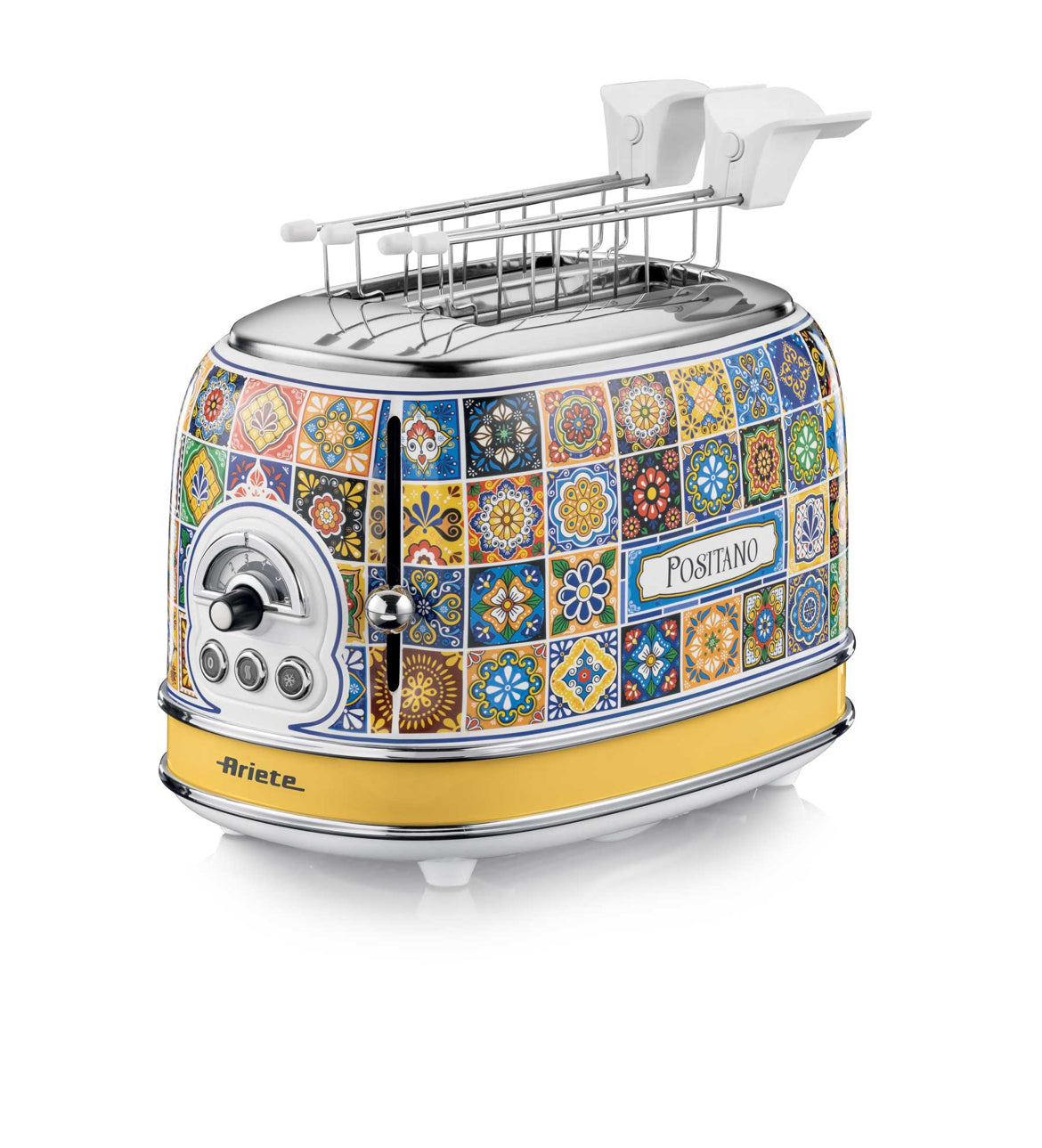 Il tostapane elettrico della linea Positano di Ariete tosta contemporaneamente 4 fette di pane, senza pinze, con 2 scomparti separati, con la possibilità di scegliere il grado di doratura e tostatura del pane che più preferisci, grazie ai 6 livelli selezionabilitramite la manopola. Le fette vengono espulse automaticamente una volta tostate, evitando spiacevoli bruciature, e le pareti fredde ti garantiscono la massima sicurezza durante l'utilizzo. Tostando 2 fette di pane contemporaneamente, potrai preparare velocemente il pane tostato per le tue colazioni americane o per i brunch con gli amici, ma non solo: con il Tostapane Positano Ariete è possibile anche attivare la funzione defrost, per scongelare in pochi istanti e tostare sandwich e panini imbottiti, per gustose merende o per le pause pranzo più veloci