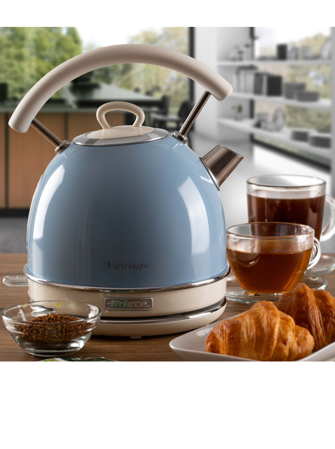 Il corpo in acciaio del bollitore Vintage e la maniglia soft touch prevengono da scottature, mentre i colori pastello e le linee retrò, lo rendono il bollitore Vintage di Ariete un elemento di arredamento per la tua cucina, funzionale e da esporre anche dopo il suo utilizzo.