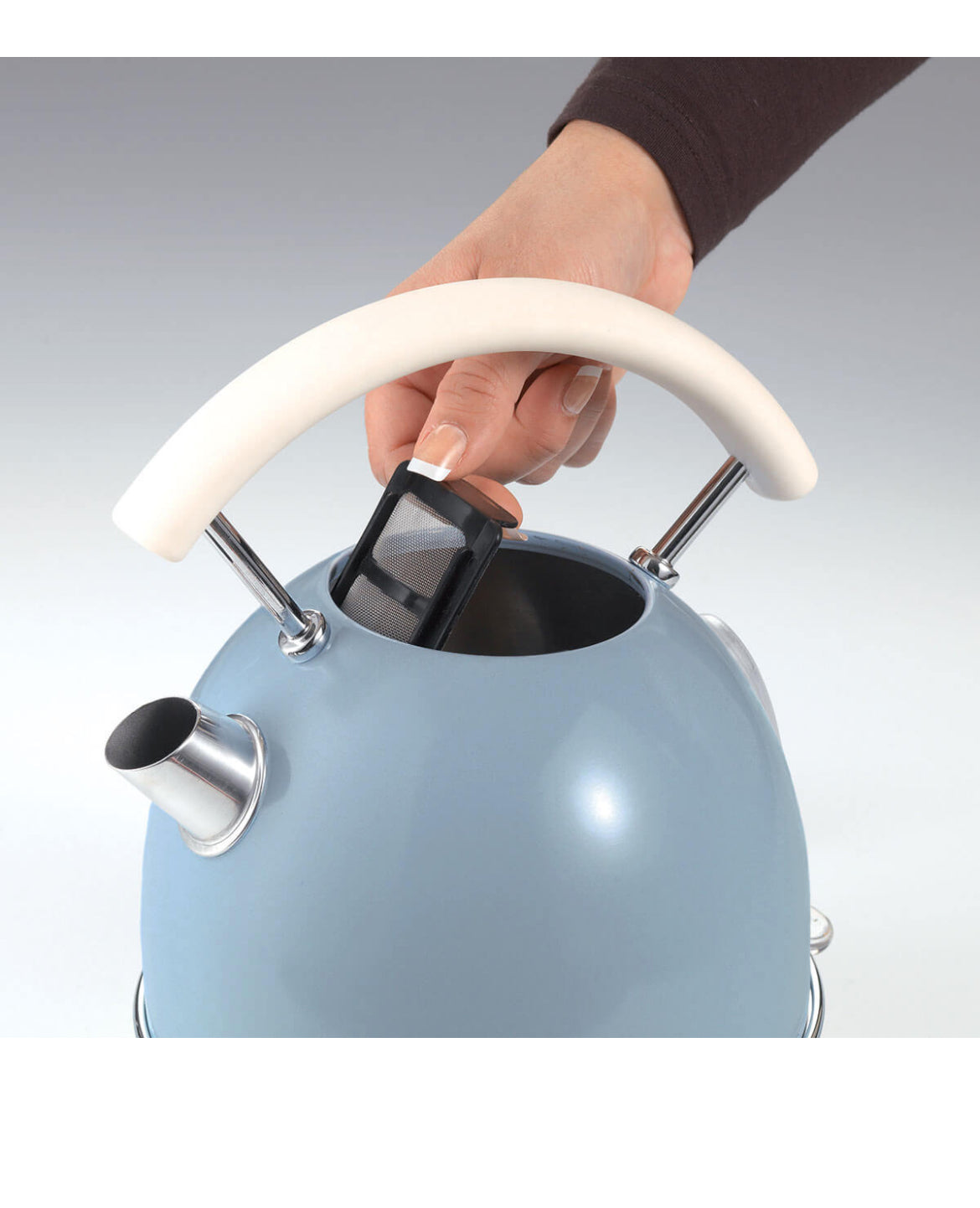 Bollitore Vintage dal design retrò che richiama le forme di una volta, indispensabile per assaporare al meglio il momento della colazione o della pausa pomeridiana. Il bollitore elettrico è dotato di filtro tisana removibile e facilmente lavabile, di impugnatura ergonomica con finitura soft touch e di un sistema di autospegnimento, rappresenta un alleato irrinunciabile in ogni cucina.